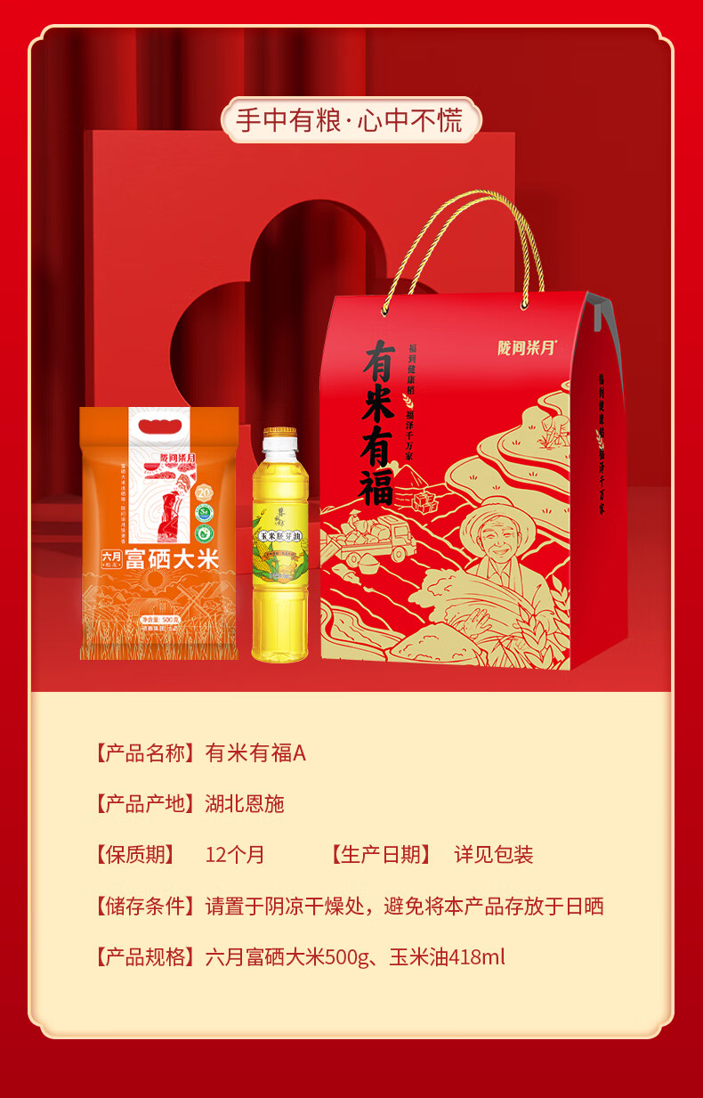 六月富硒大米500g、玉米胚芽油418ml