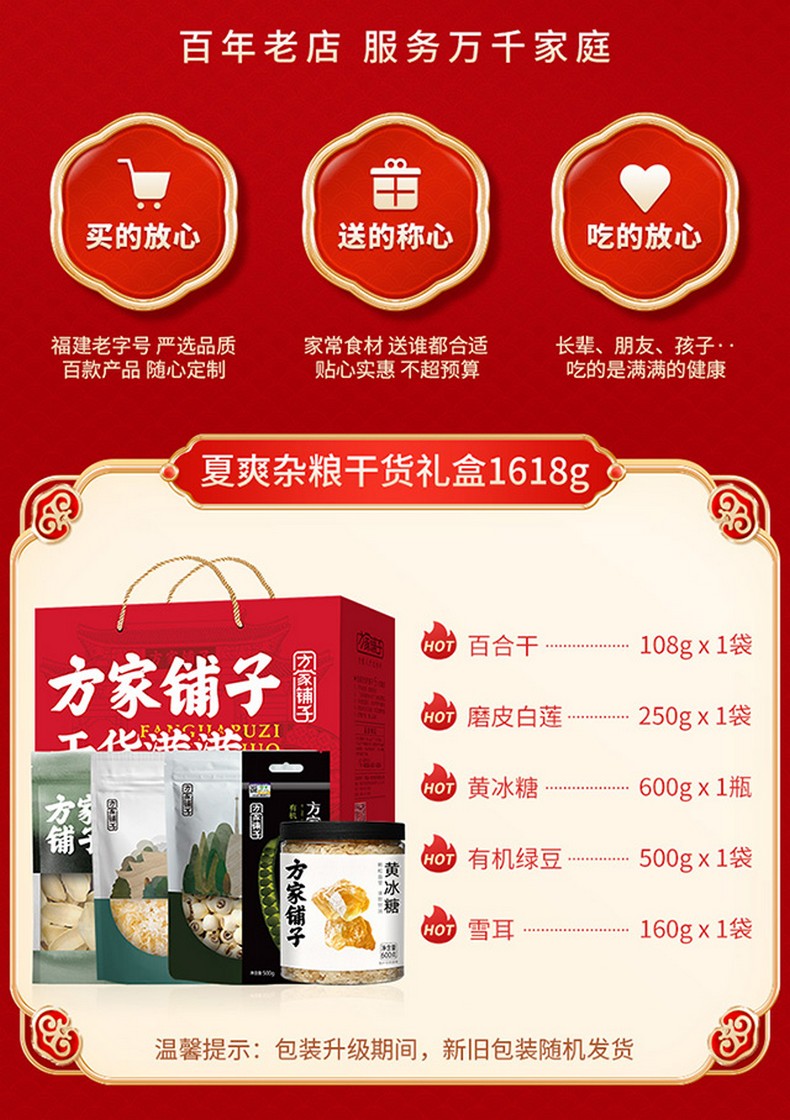 【方家铺子】夏爽杂粮干货礼盒1618g/礼盒装(绿豆百合莲子银耳羹)