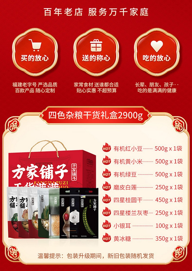 【方家铺子】四色有机杂粮干货礼盒2900g/礼盒装