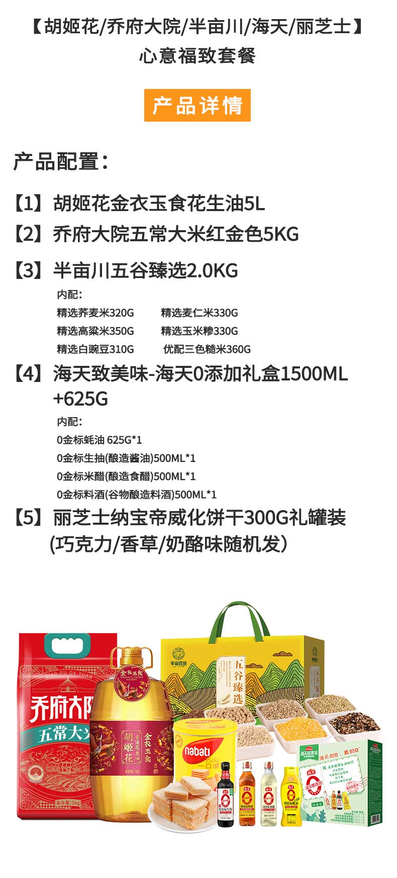 胡姬花/乔府大院/半亩川/海天/丽芝士-粮油调味饼干心意福致组合