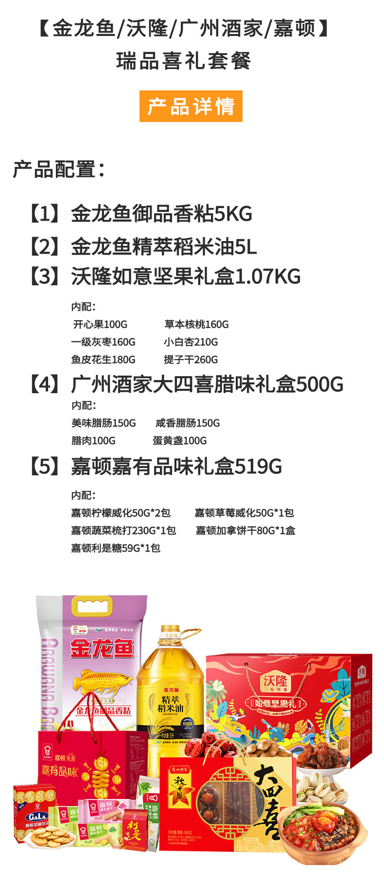 金龙鱼/沃隆/广州酒家/嘉顿-粮油坚果腊味饼干零食瑞品喜礼套餐
