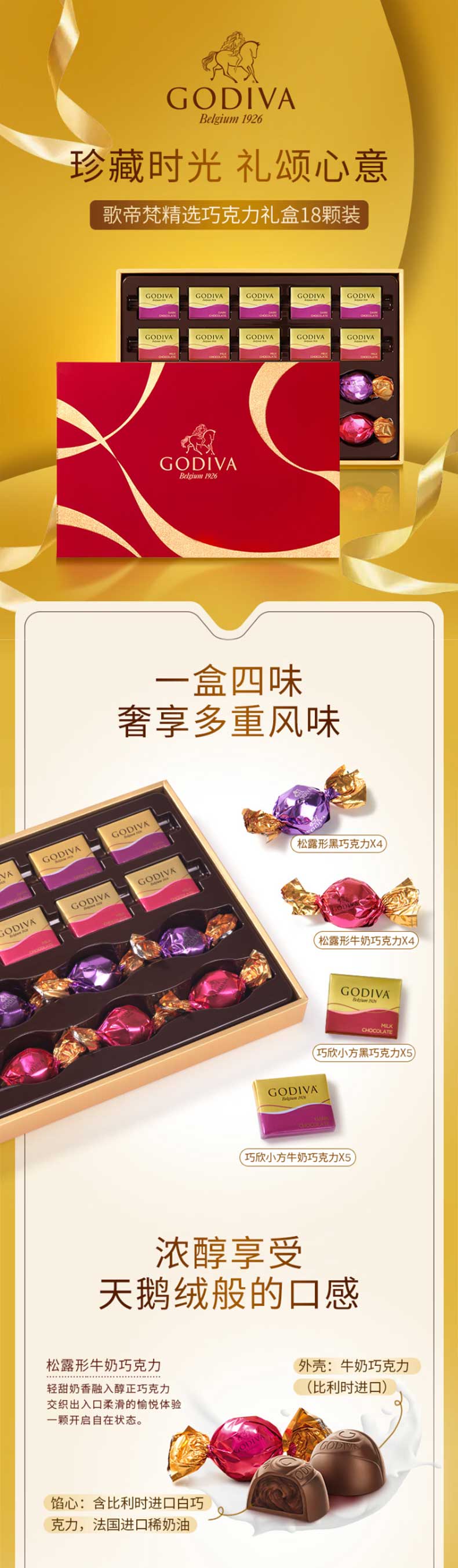 3.歌帝梵精选巧克力礼盒18颗装145g