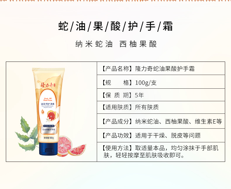 隆力奇蛇油果酸护手霜 补水保湿 100g