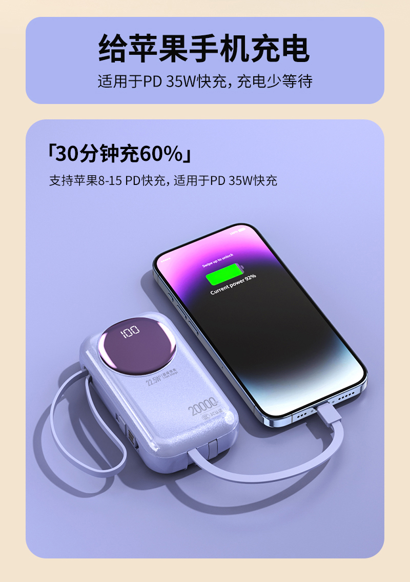 1. [30分钟充60%」支持苹果8-16 PD快充,适用于PD 35W快充;