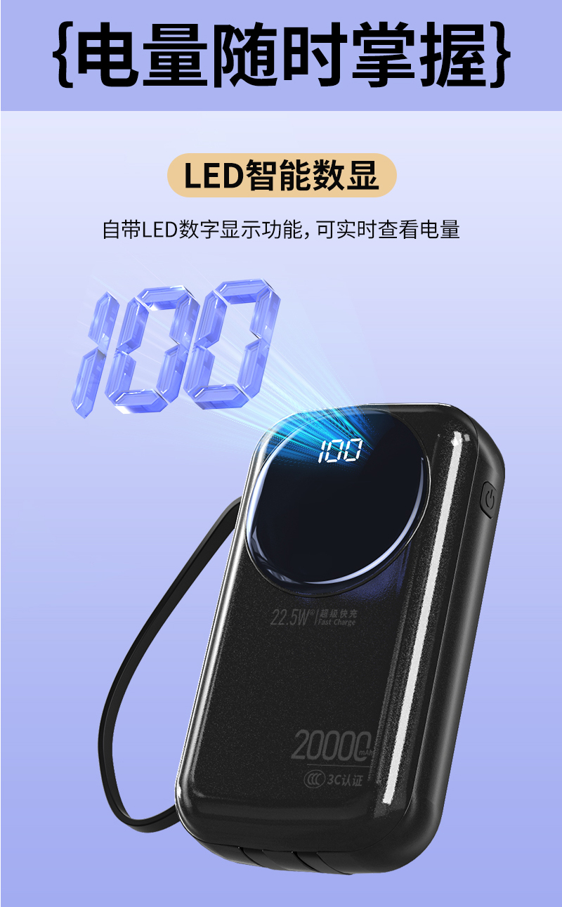 6.LED智能数显,自带LED数字显示功能,可实时查看电量;