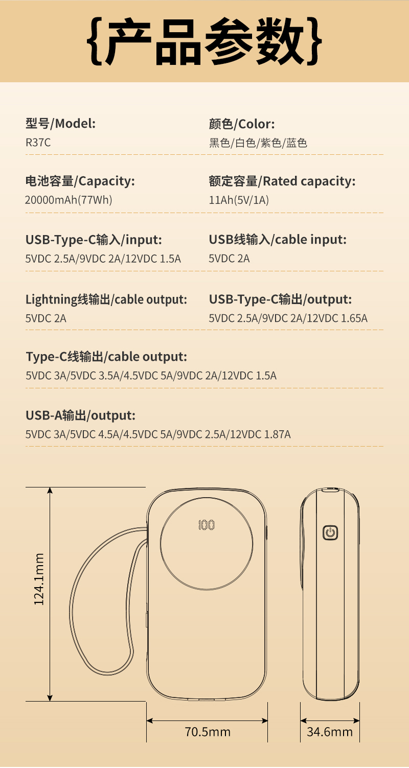 塞尔兰斯20000毫安移动电源20000mAh R37C