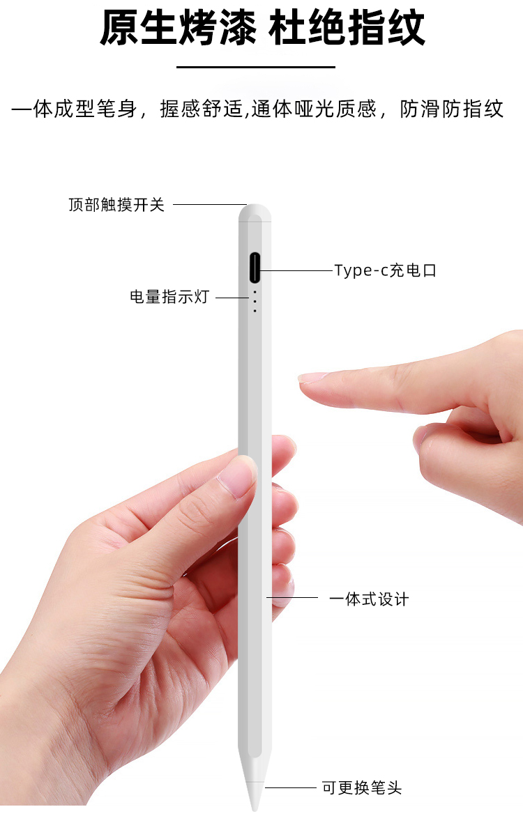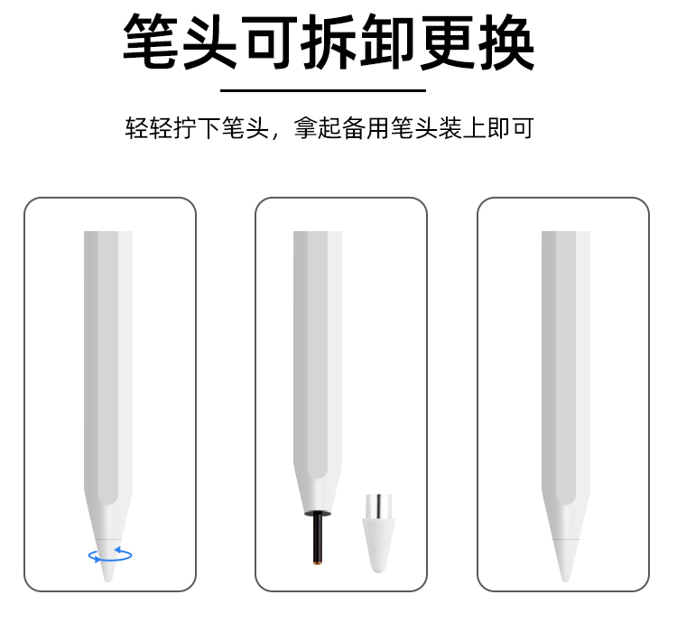 3.笔头可拆卸更换,可吸附ipad.长续航/电力升级,内置大容量锂电池,60-80分钟可充满电,使用长达10小时,5分钟不使用智能断电,防止电量流失.