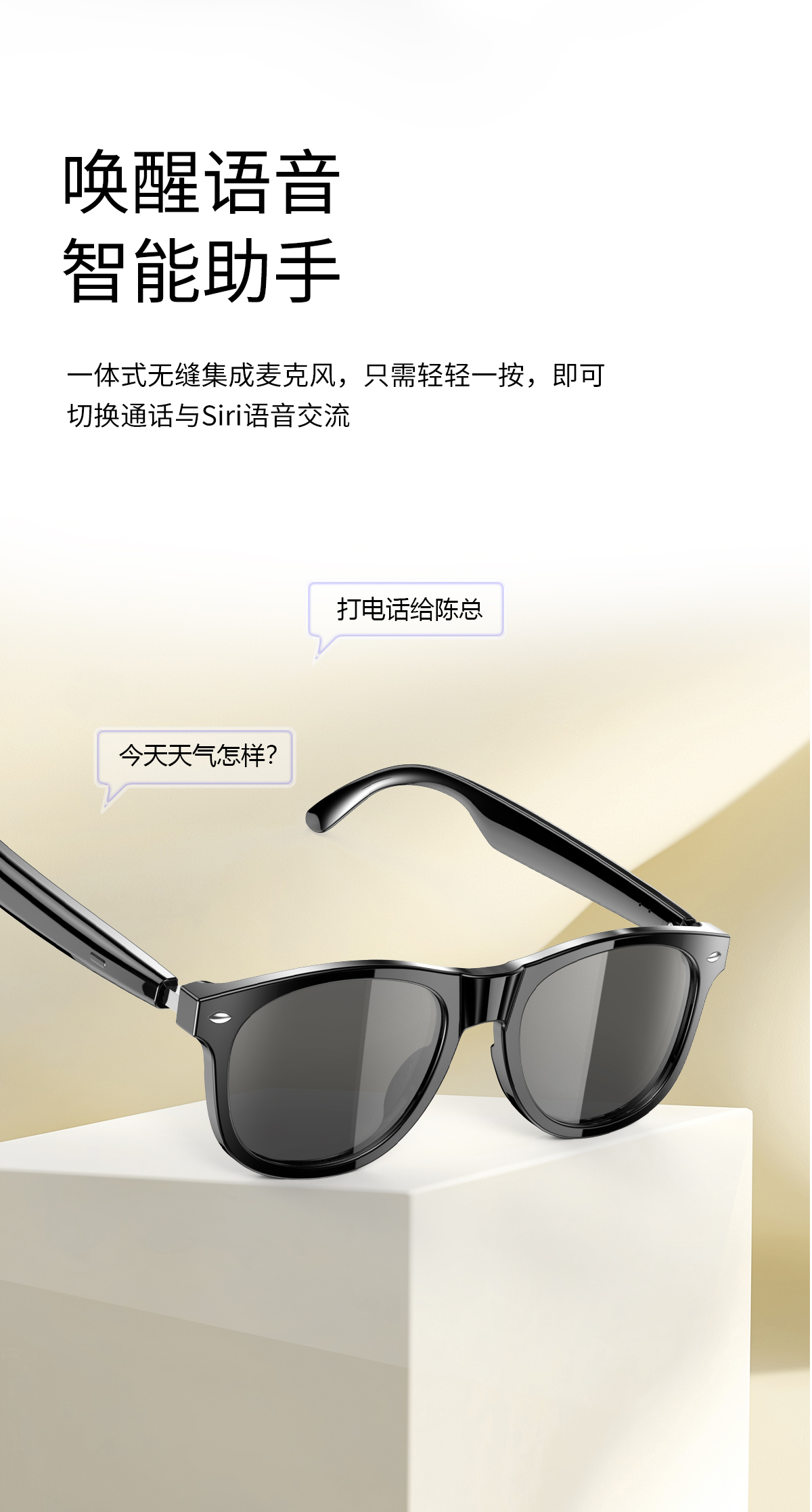 2,既是蓝牙耳机,又是高清户外太阳墨镜,便携多功能合一,听歌,打电话,语音助手;