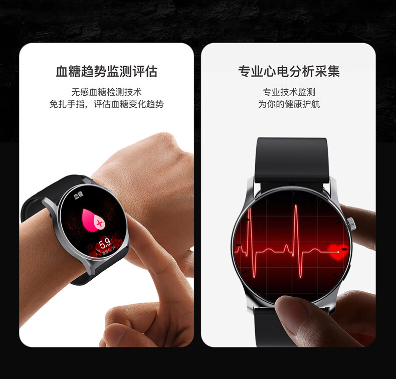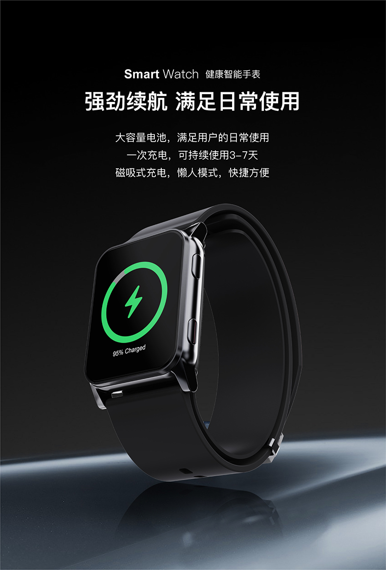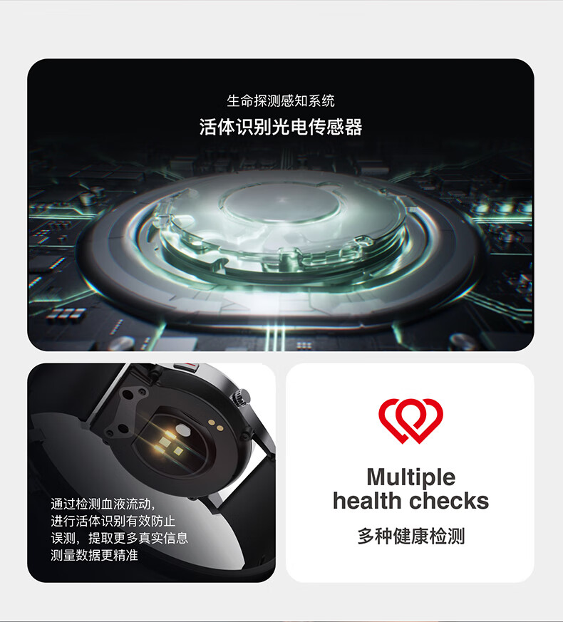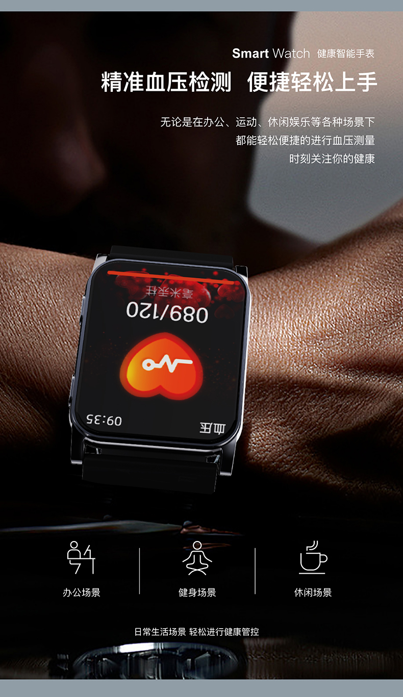 1,内置气泵与气囊,精准血压,血氧,心率,睡眠质量等测量。