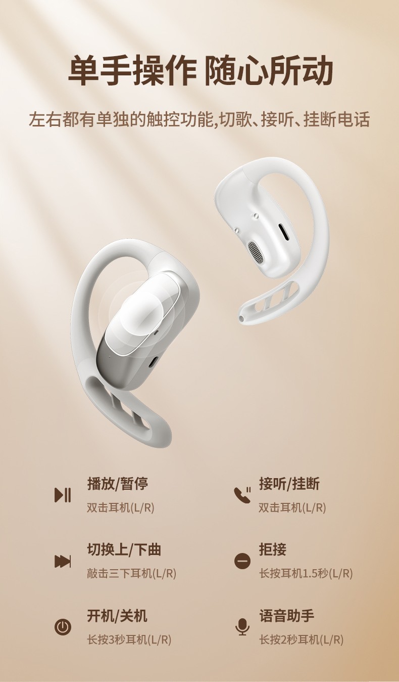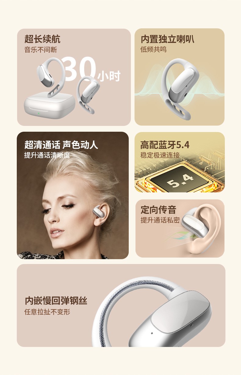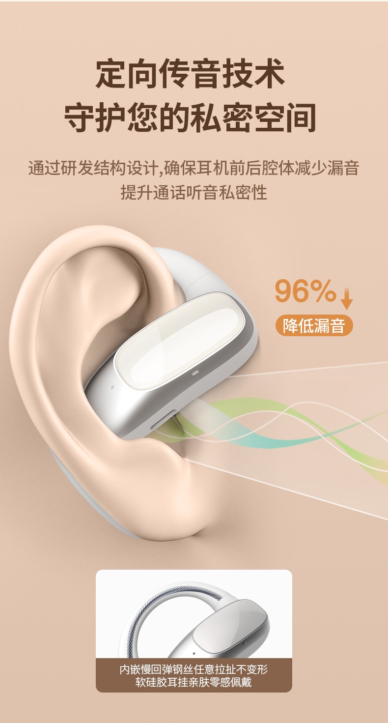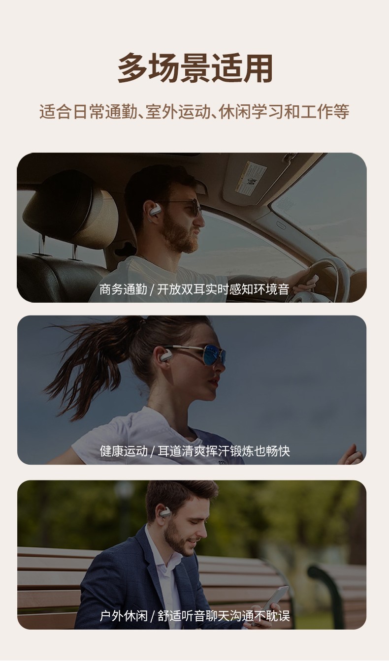 2,全天候轻盈舒适,久戴不累耳,兼顾音乐与环境音,佩戴更安全