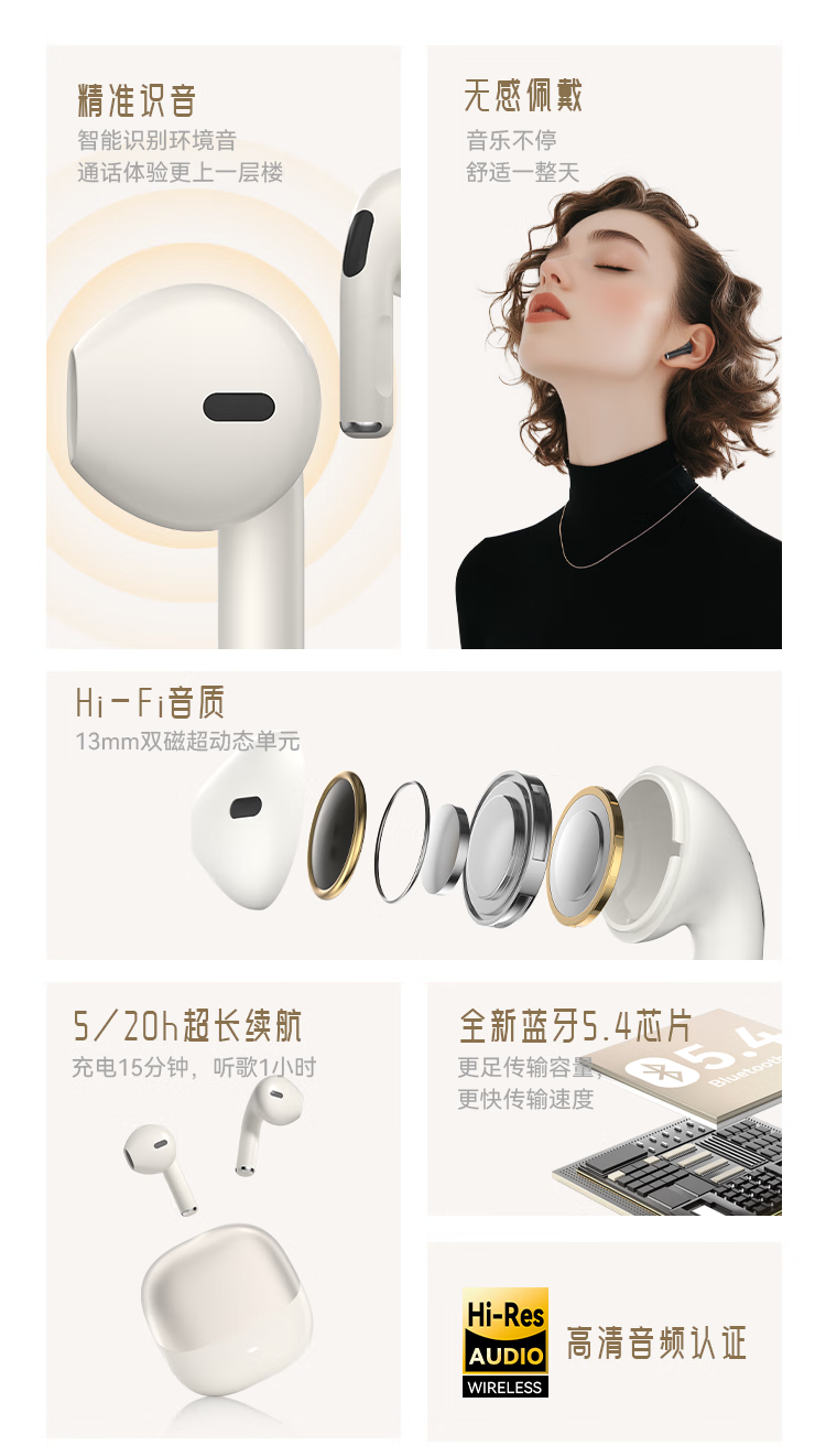 3,蓝牙5.4芯片,功耗低、不延迟、不卡顿