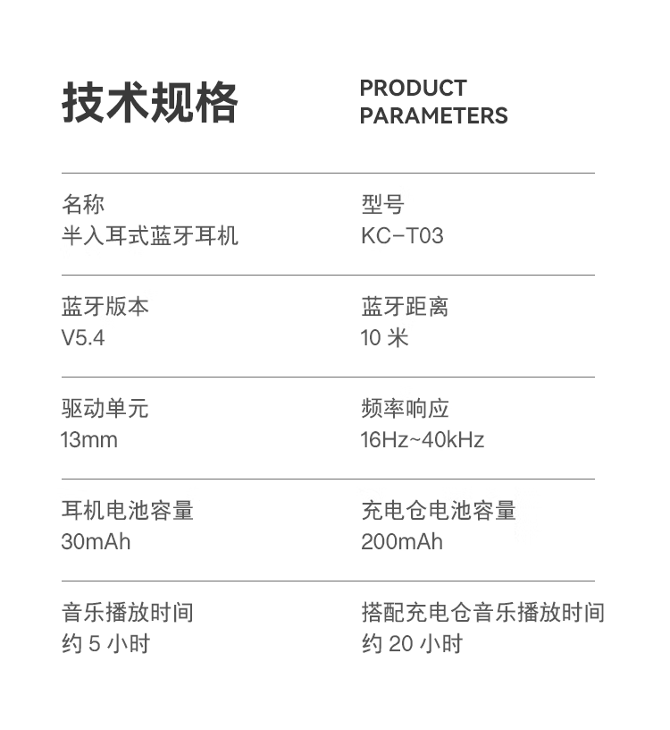 塞尔兰斯-蓝牙耳机-TWS半入耳式耳机(型号:KC-T03)