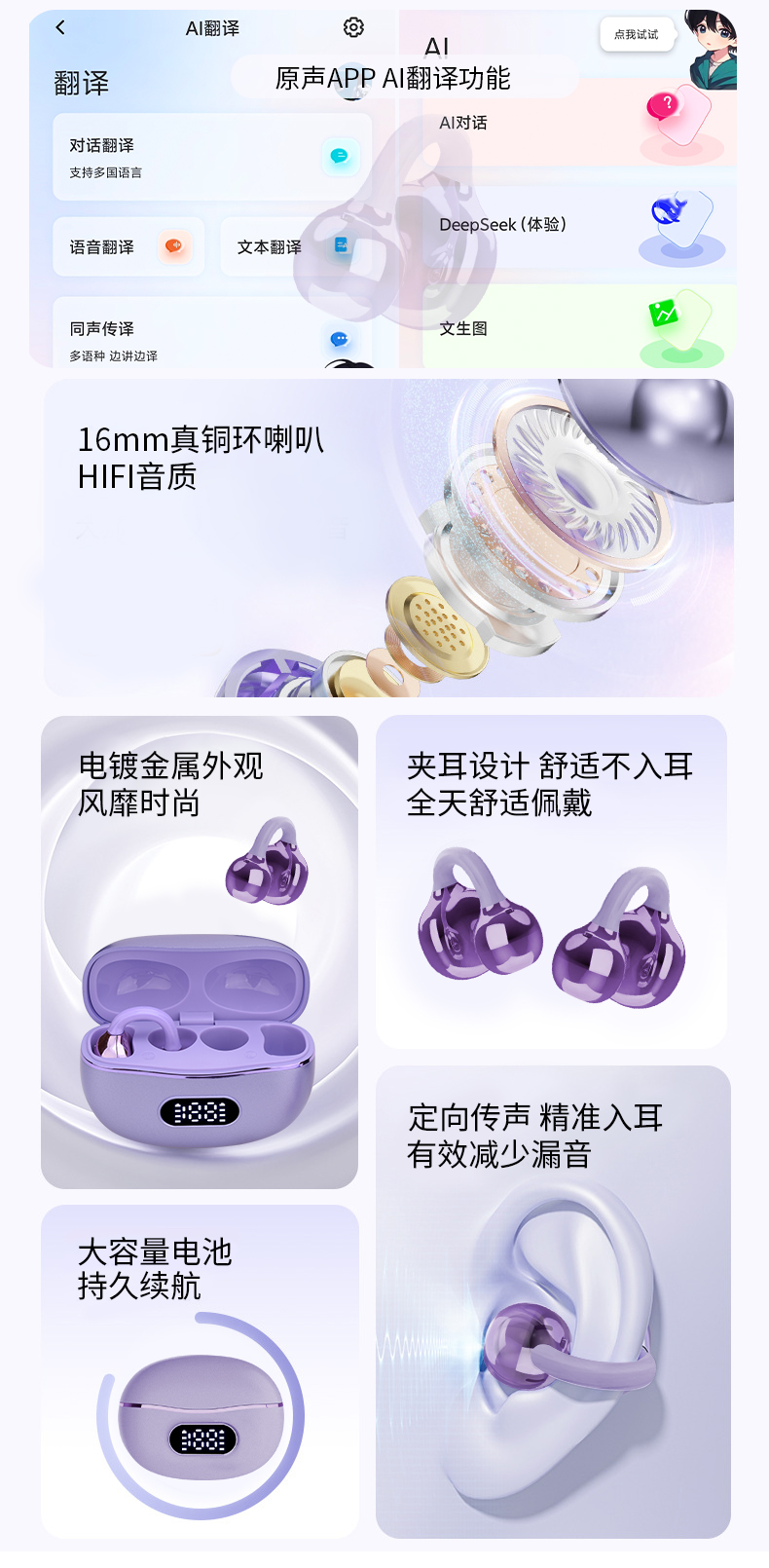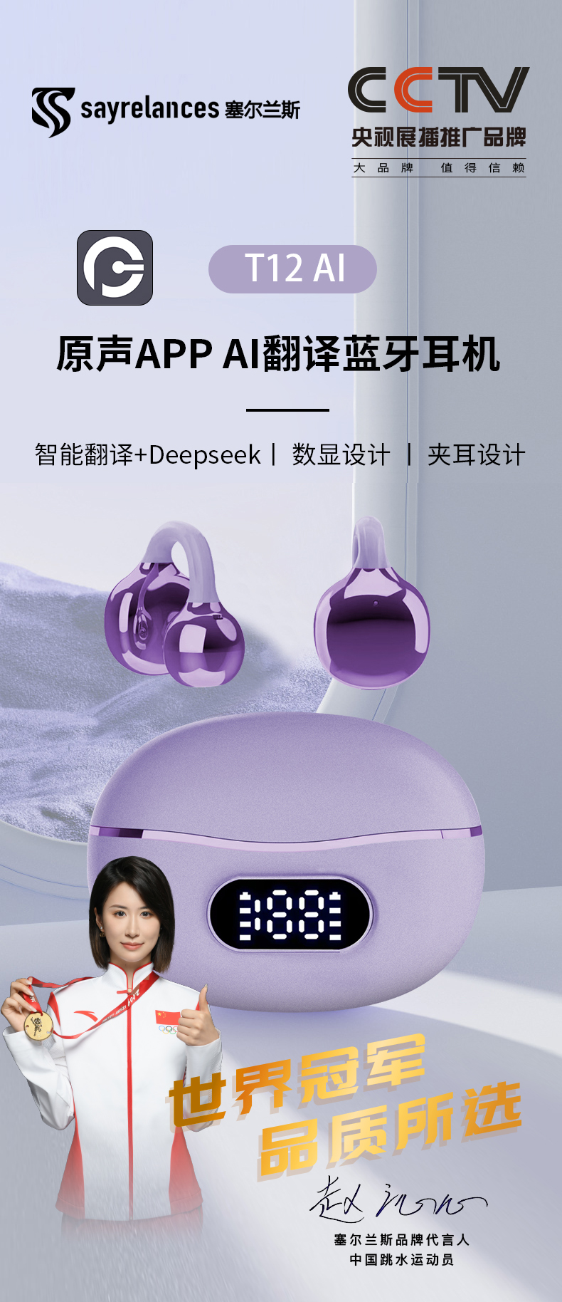 塞尔兰斯-蓝牙耳机-翻译耳机 AI翻译耳机-夹耳T12