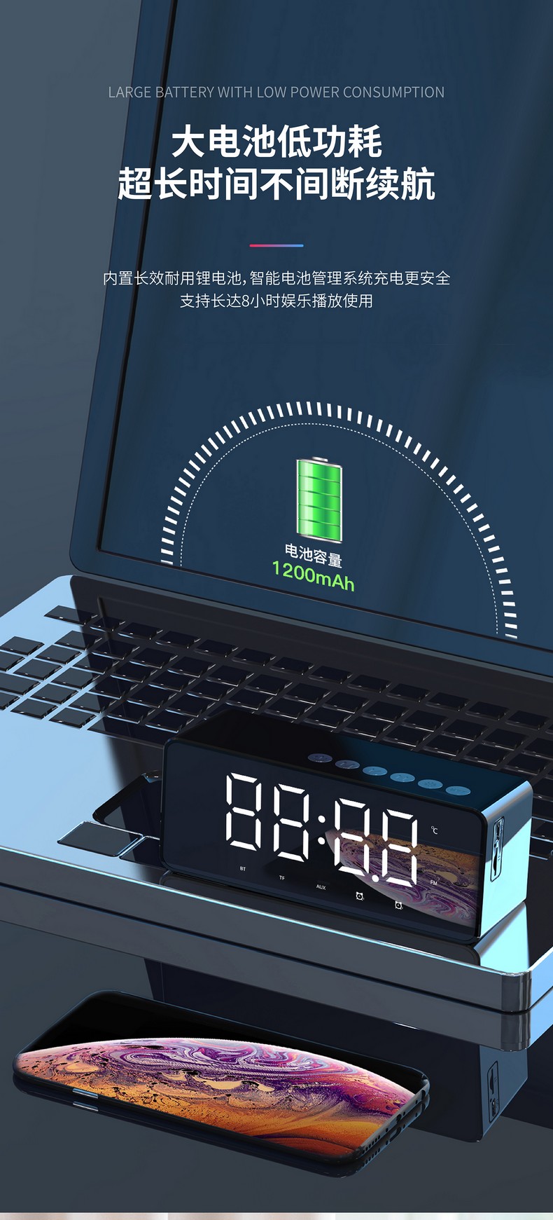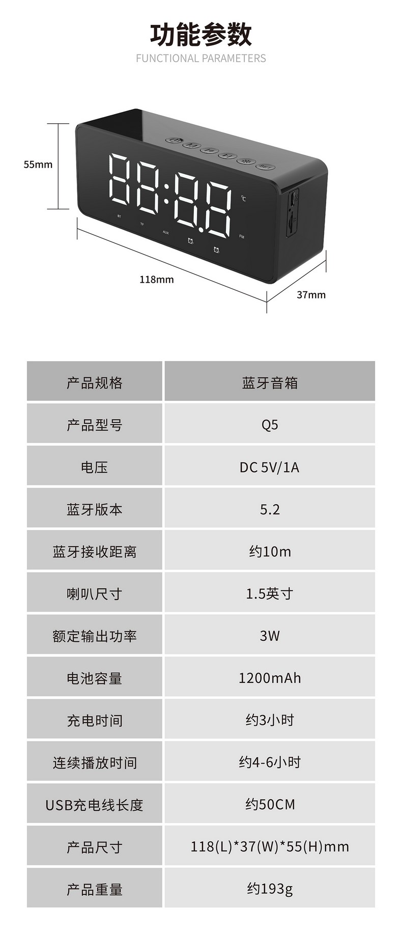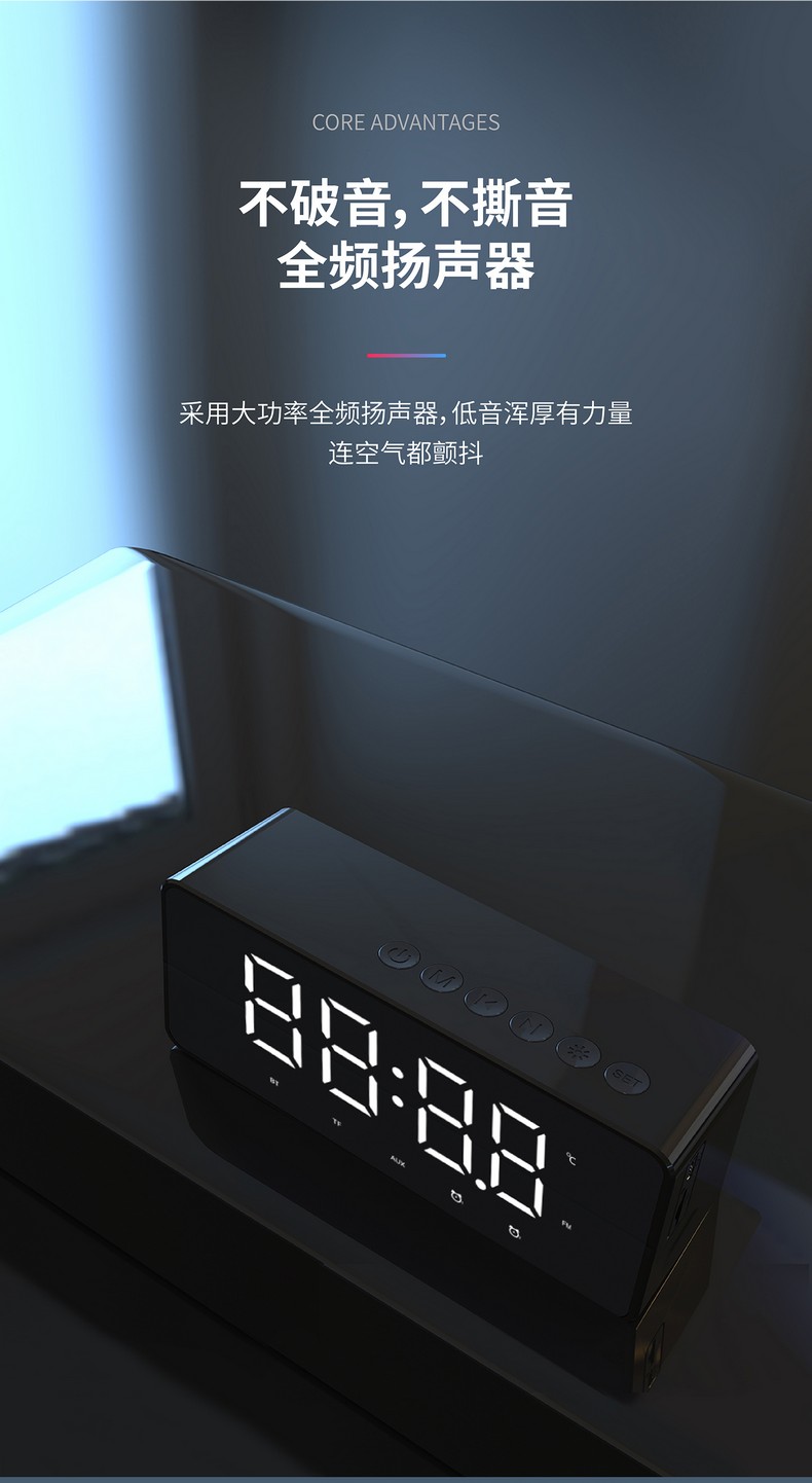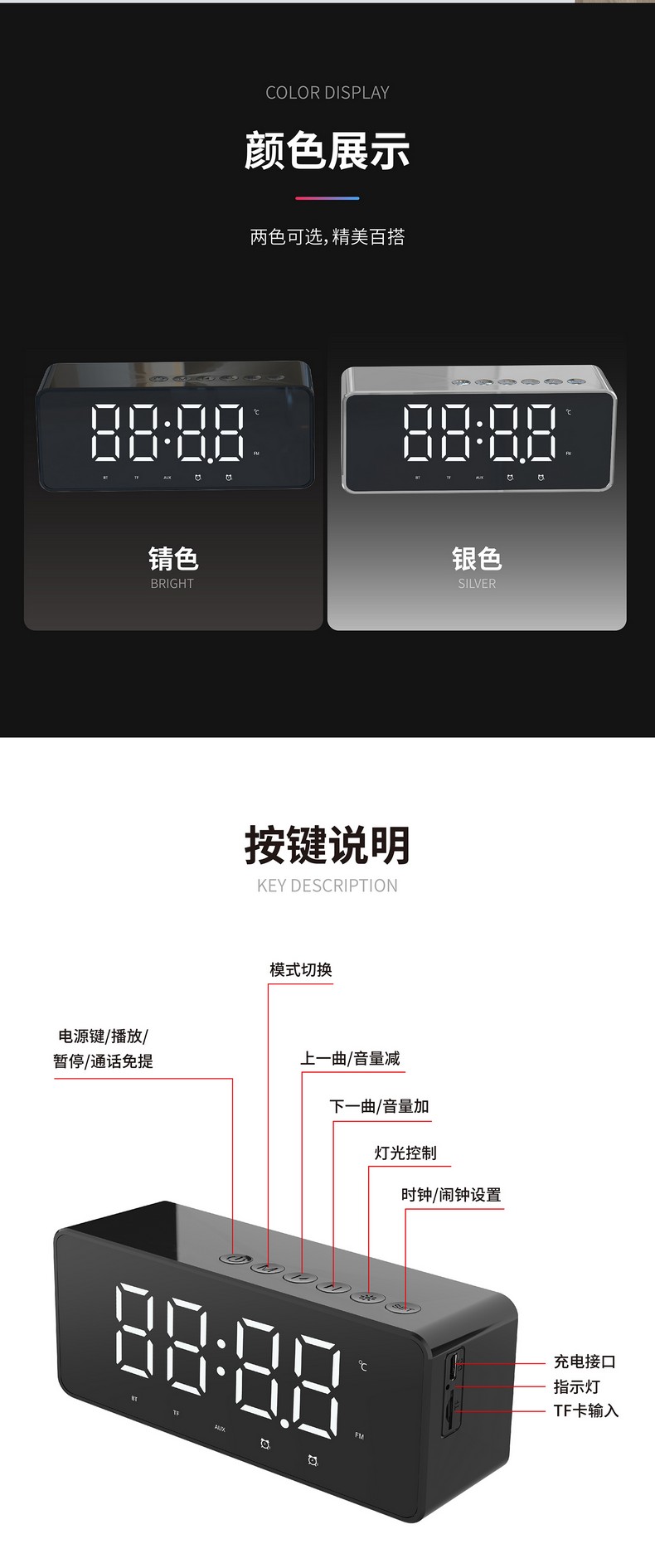 1,支持通话、语视频音聊天,智能降噪通话清晰; 2,闹钟、温度显示、收音机多功能合一,支持TF卡插卡,收款播报;