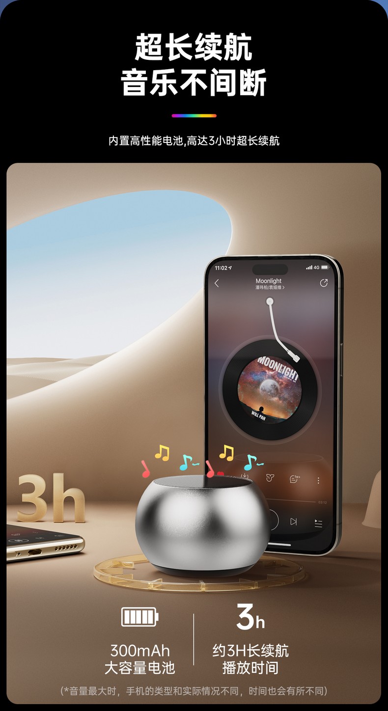 3,最大音量时,3H+续航,10米蓝牙距离 ;