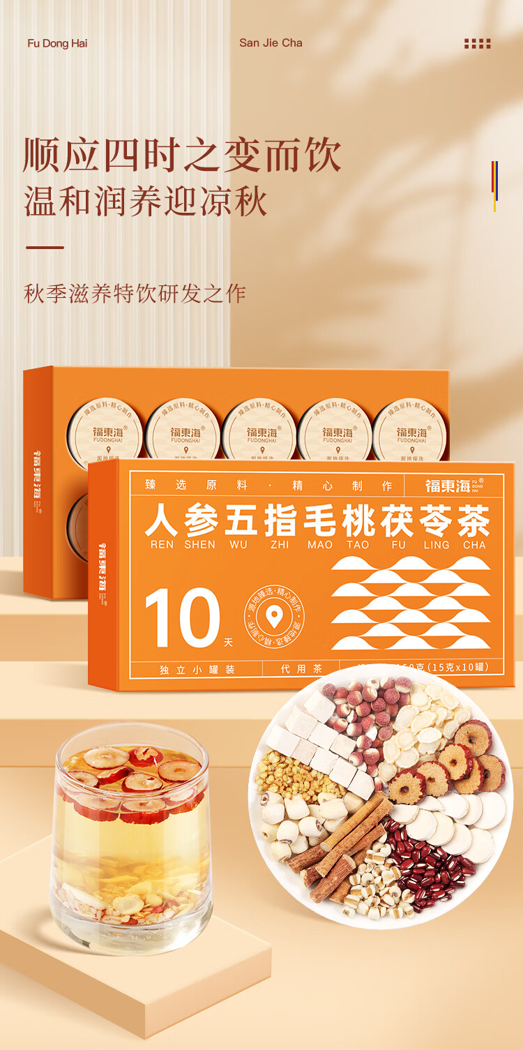 人参五指毛桃茯苓茶150克(15克x10罐)/盒