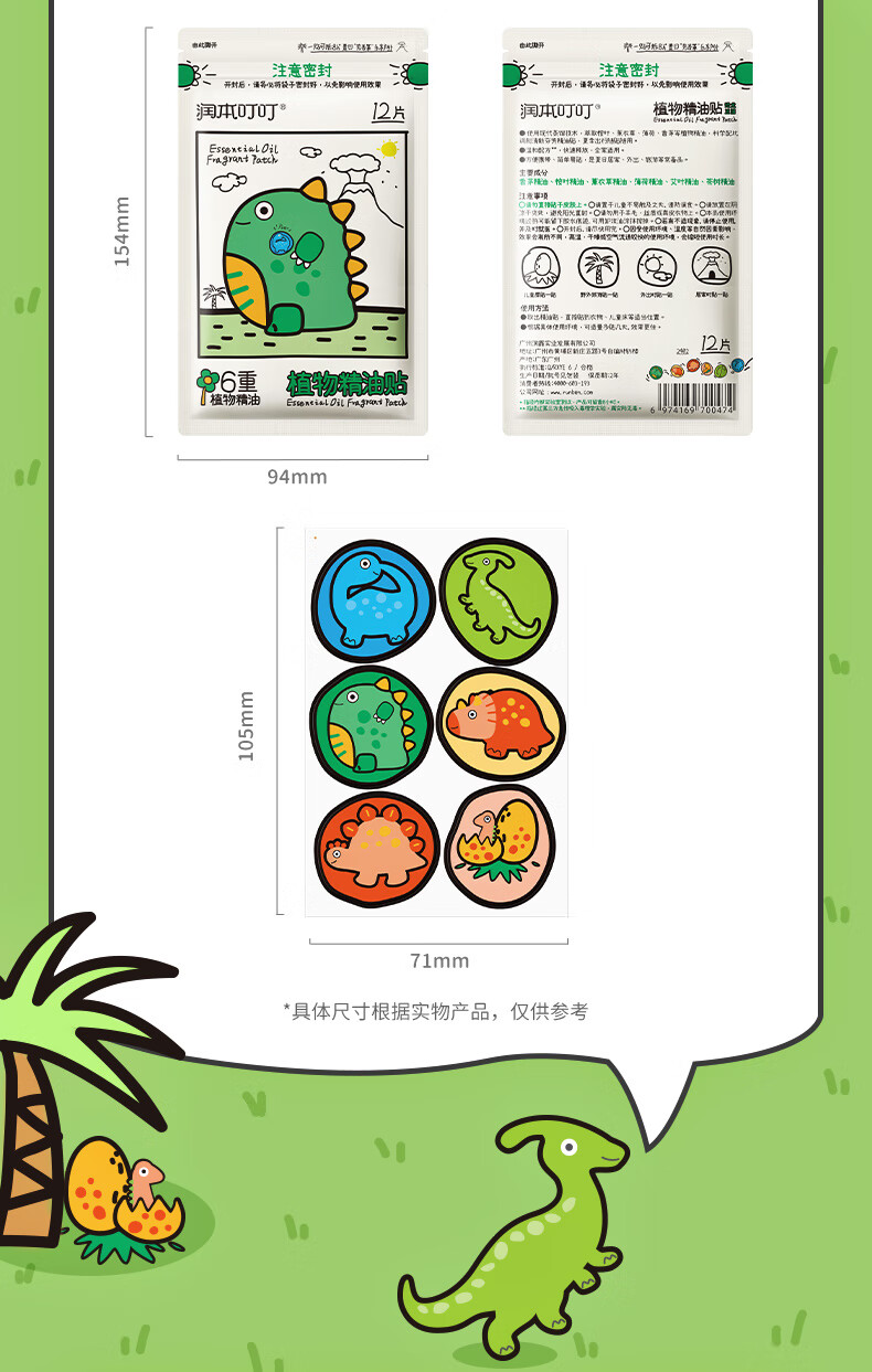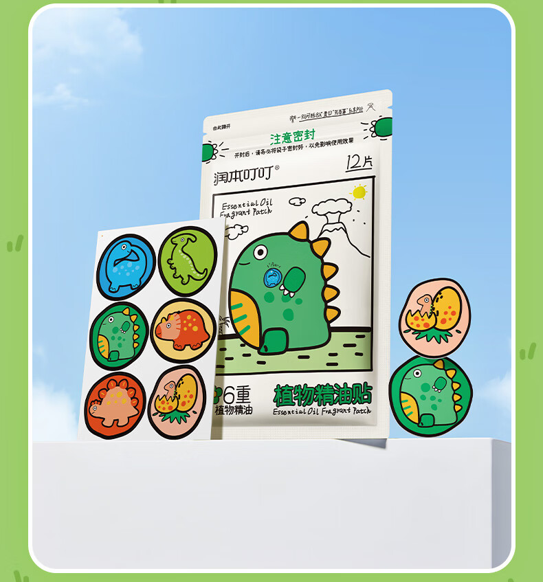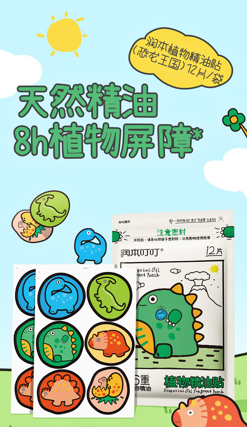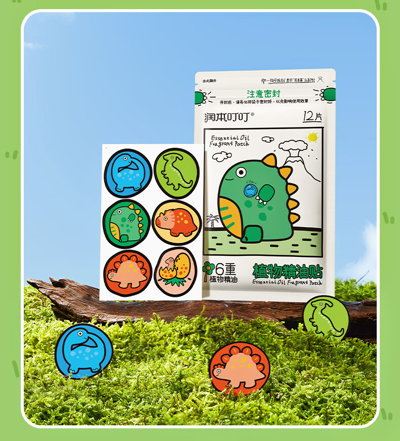 • 润本叮叮植物精油贴(恐龙王国)-12片装-2024版