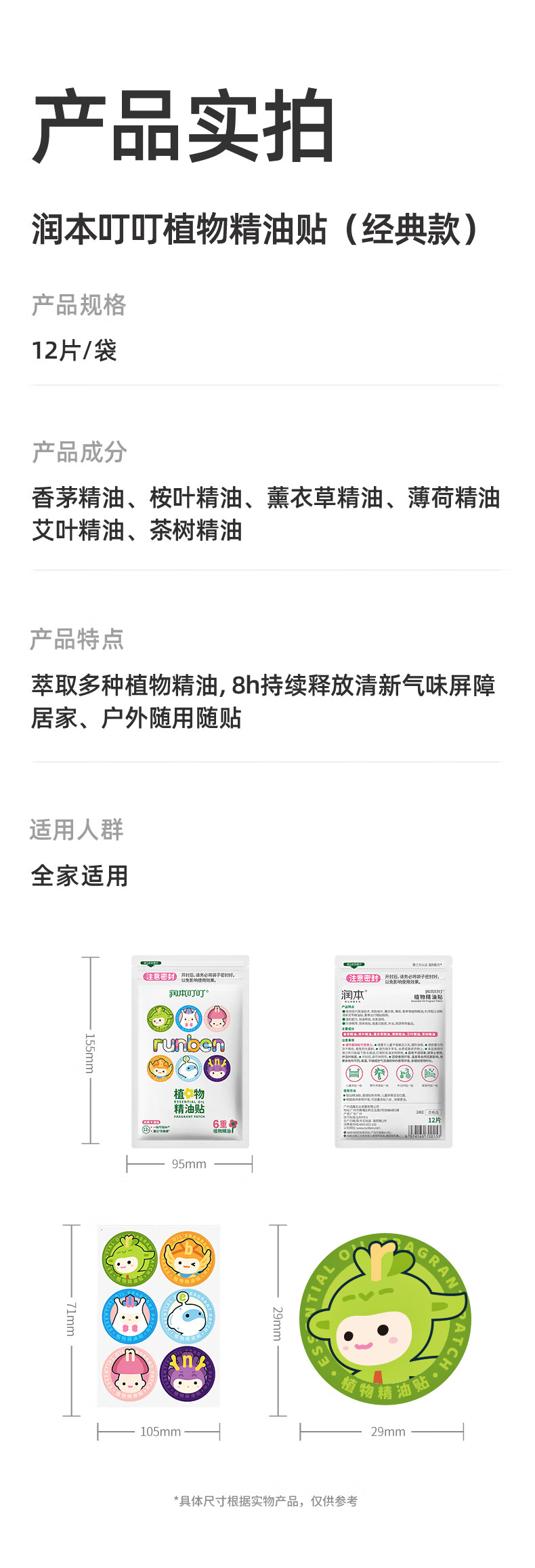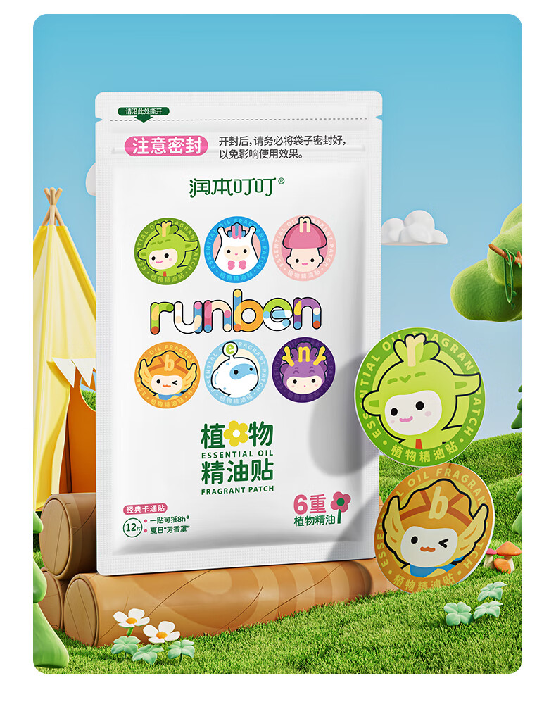 润本叮叮植物精油贴PU款(经典卡通贴) 12片装-2024版-X
