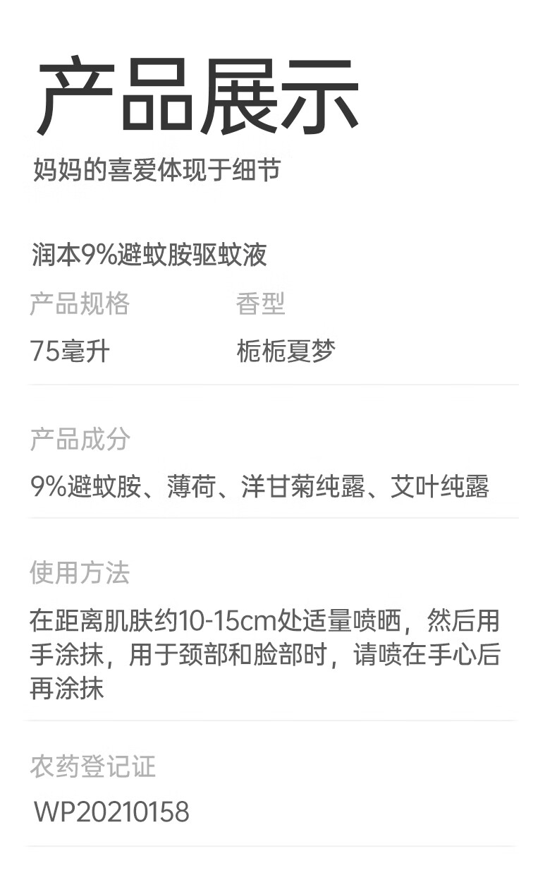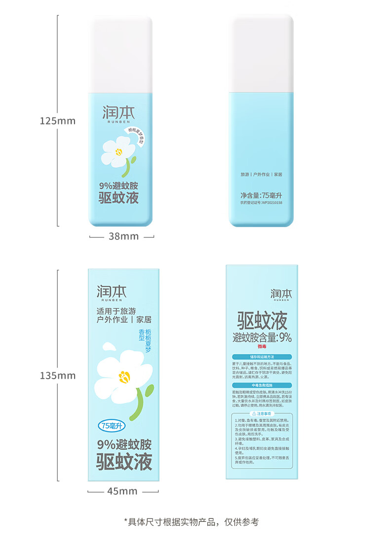 润本9%避蚊胺驱蚊液75ml(栀栀夏梦)-2024版