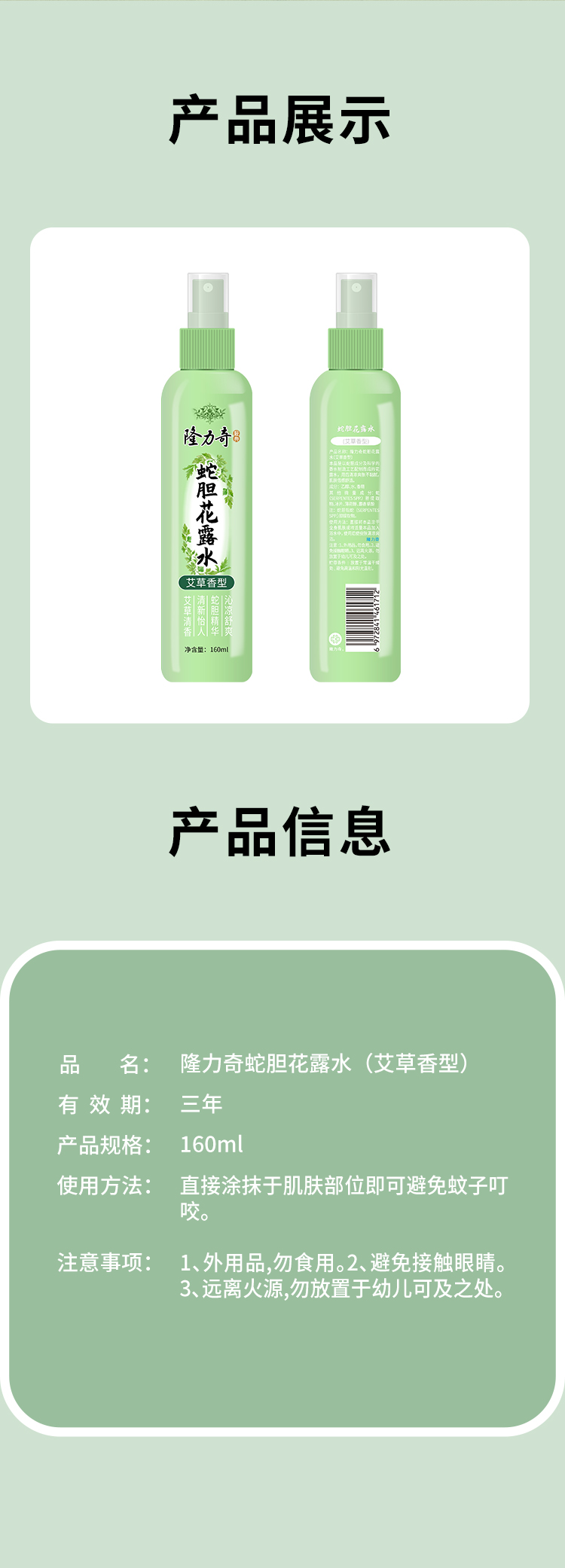 名称:隆力奇艾草香型蛇胆花露水 160ml