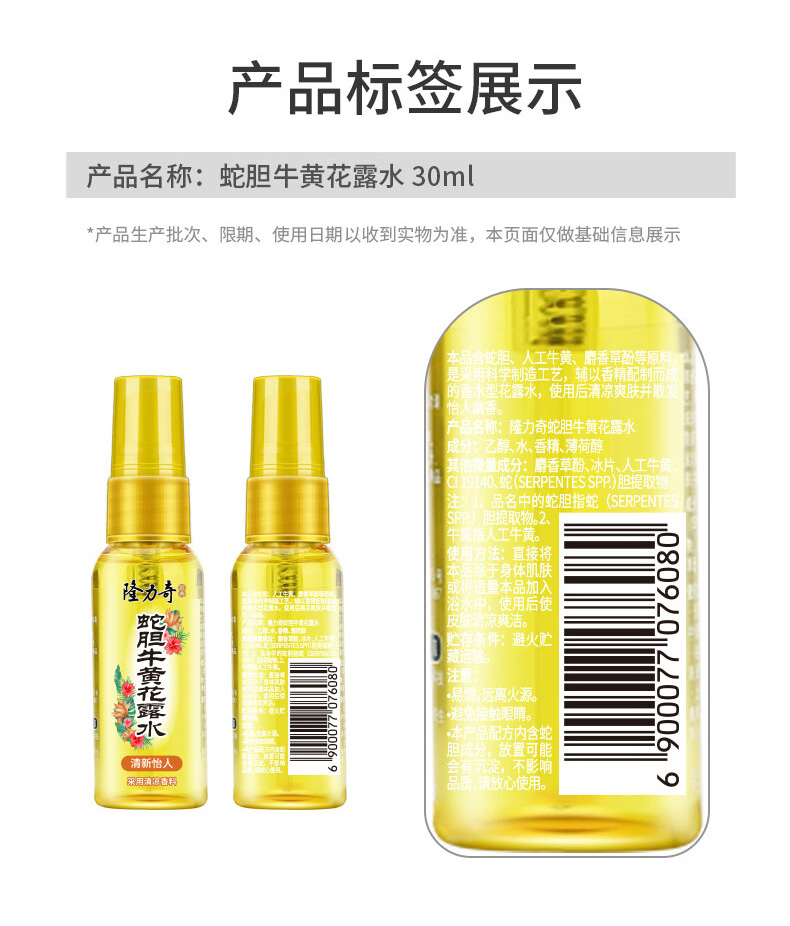 名称:隆力奇蛇胆牛黄花露水30ml