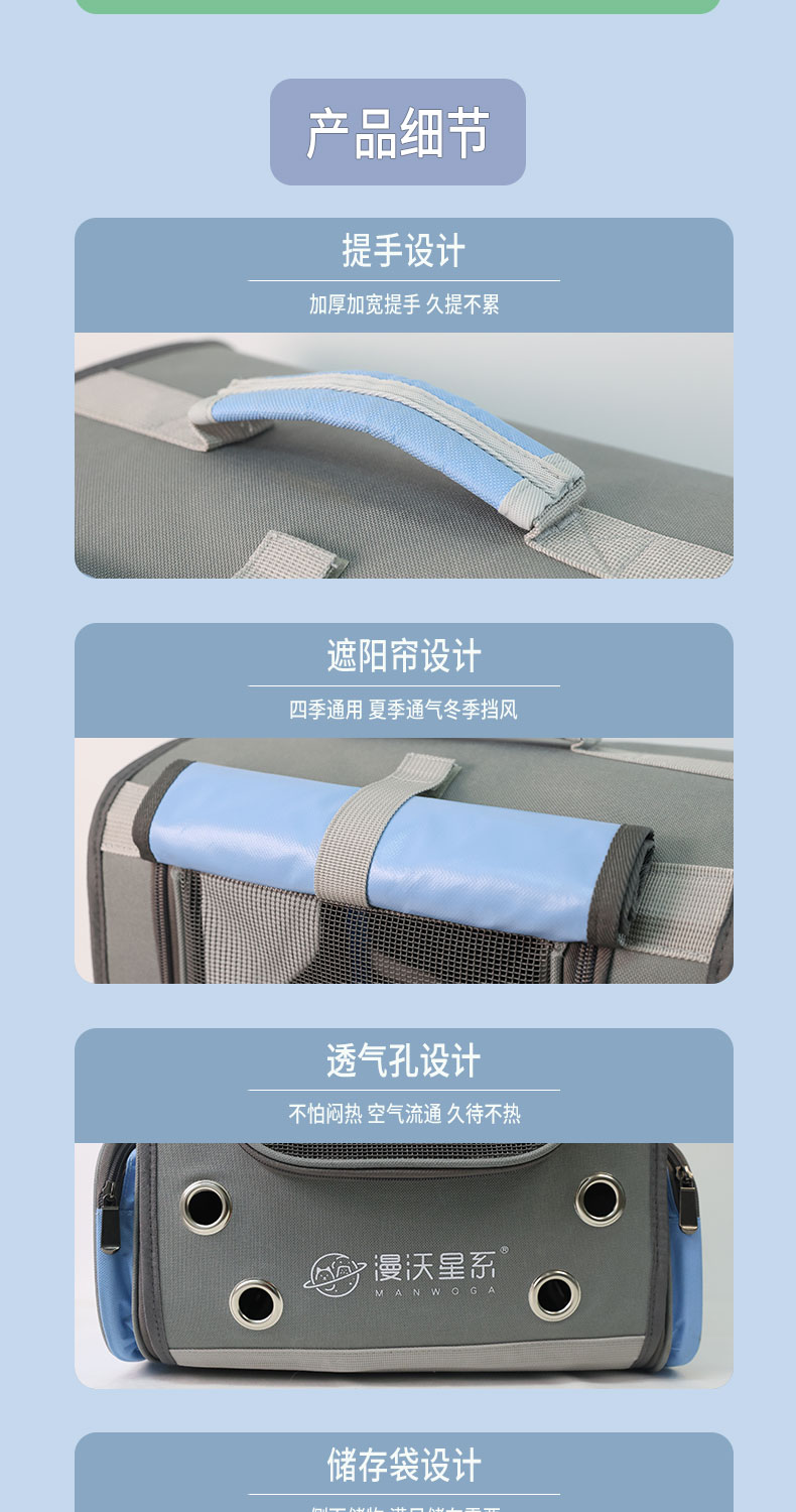 9. 侧面多规格储物袋设计,方便出行携带爱宠不同配件