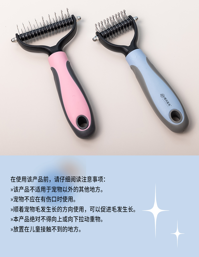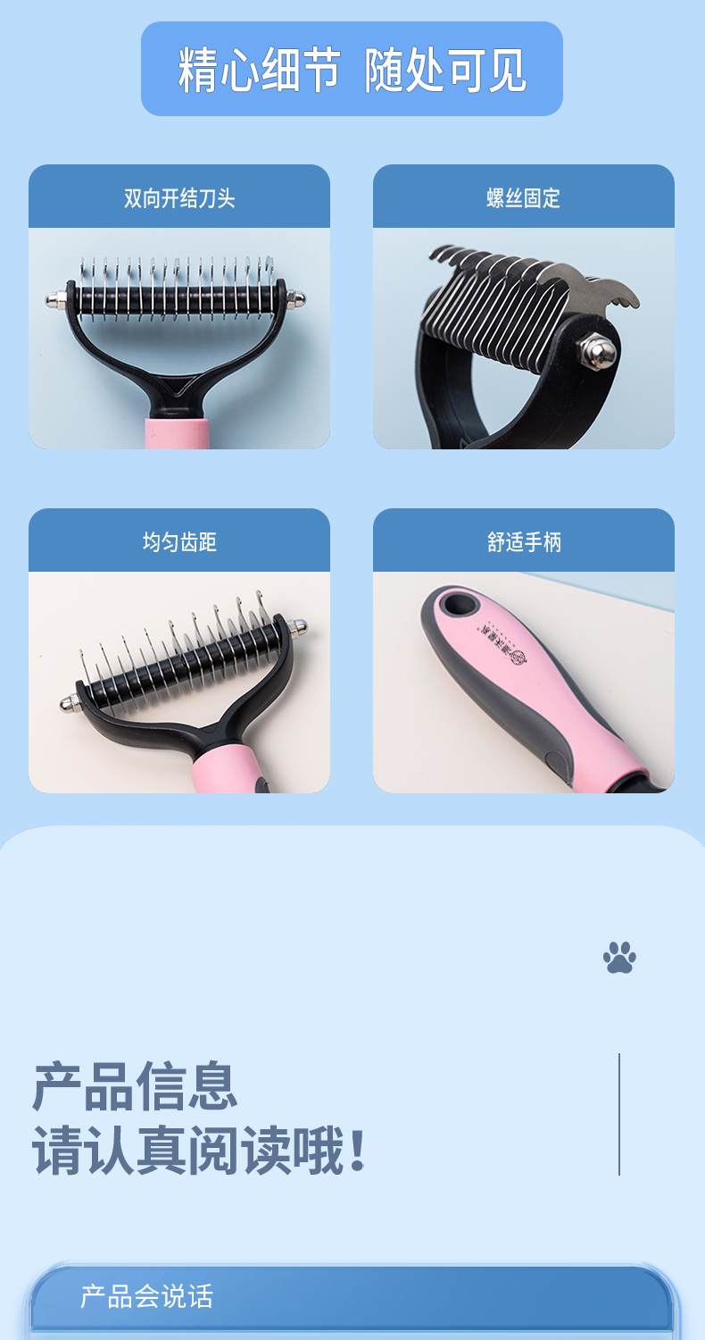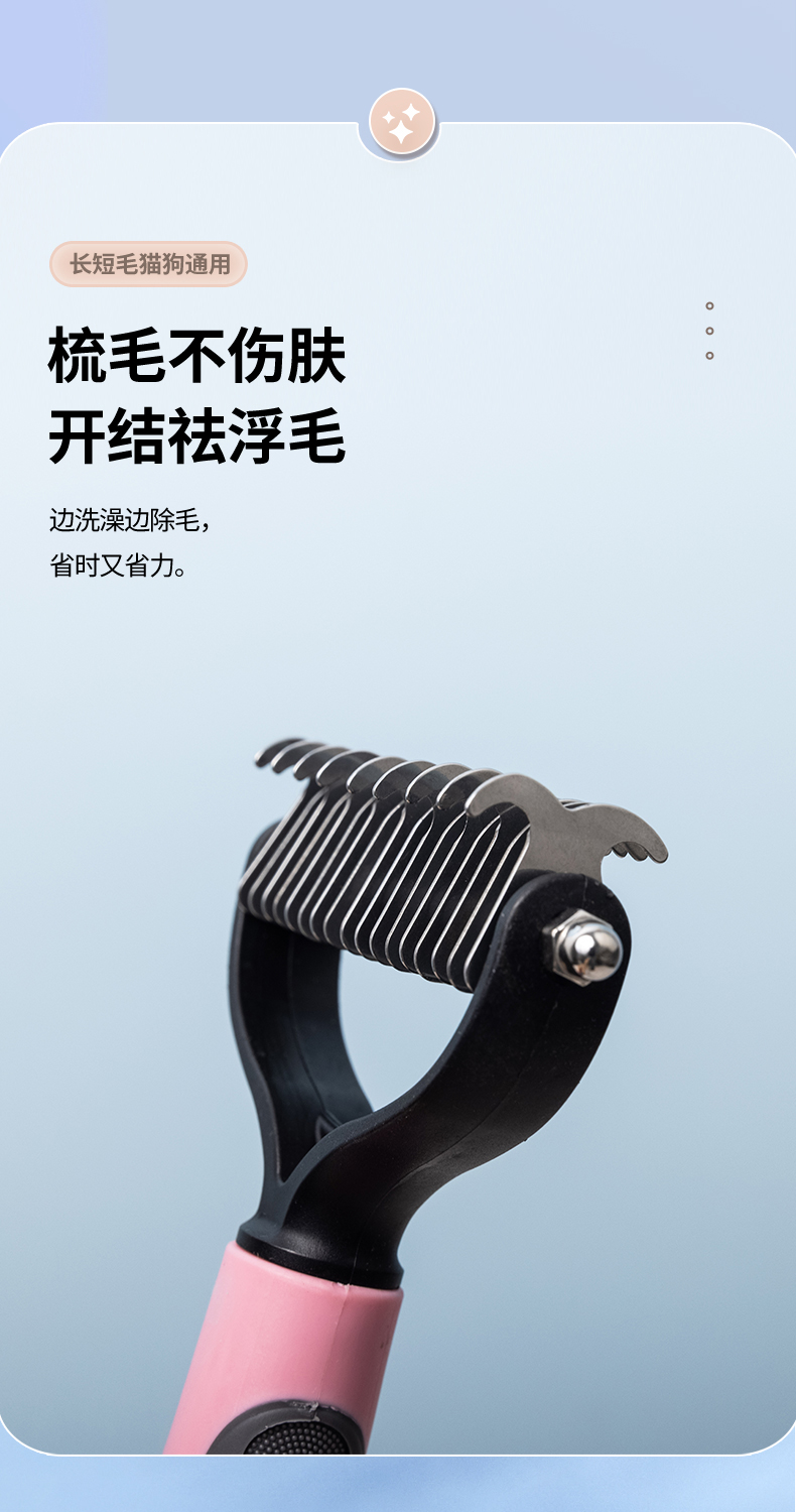 防滑舒适手柄,梳毛不伤肤,开结祛浮毛