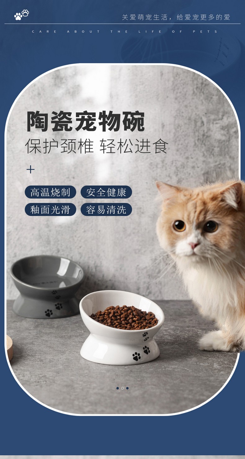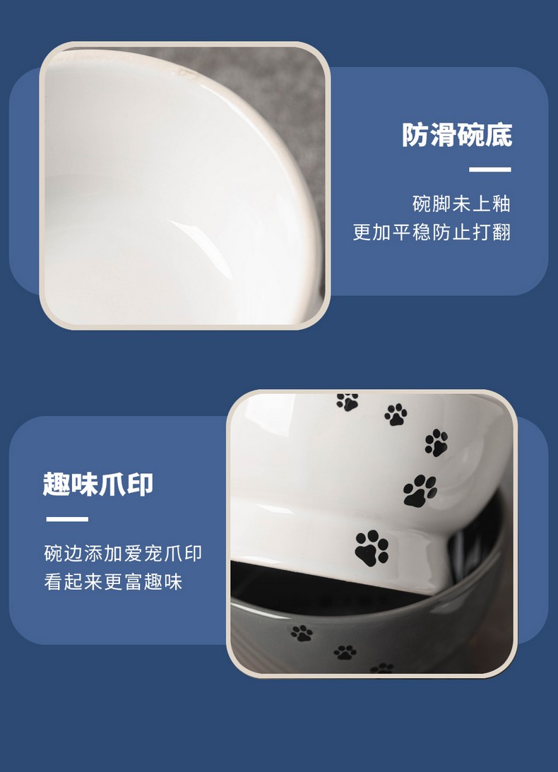 漫沃星系平口陶瓷猫碗MC-601白色/MC-602灰色 /斜口陶瓷猫碗MC-603白色/斜口MC-604灰色