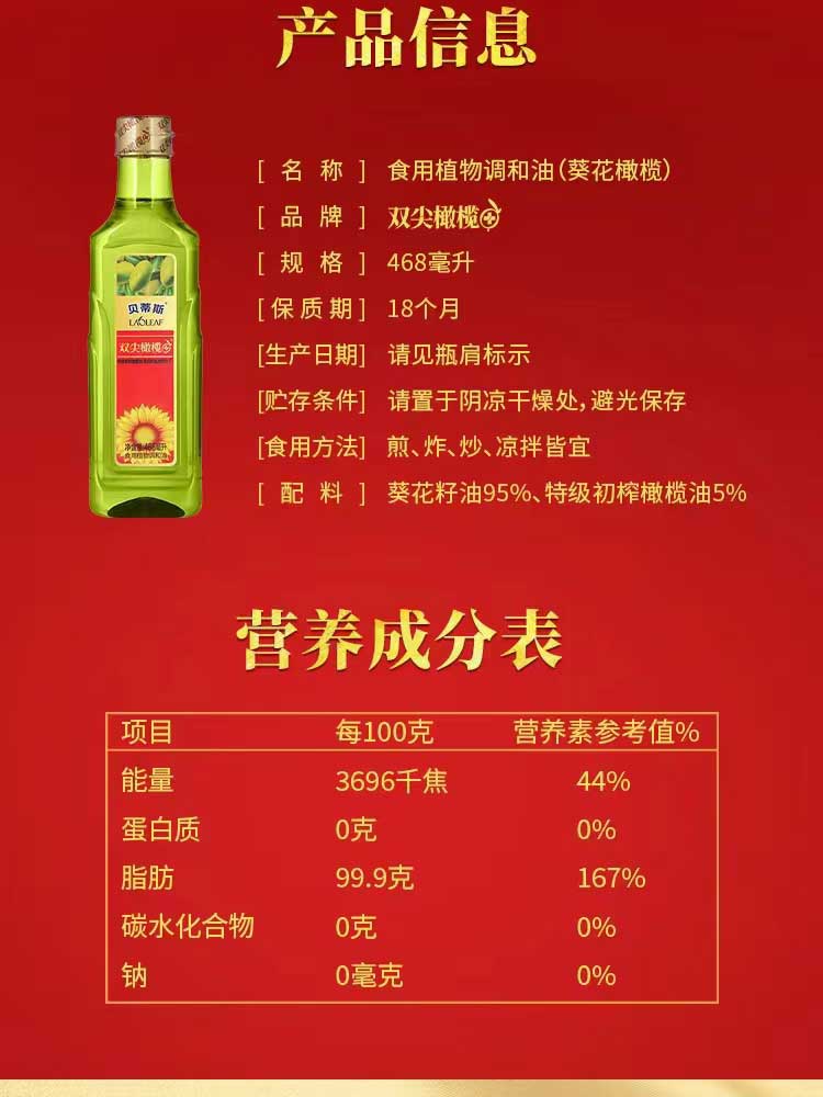 • 贝蒂斯食用植物调和油(葵花橄榄)468ml