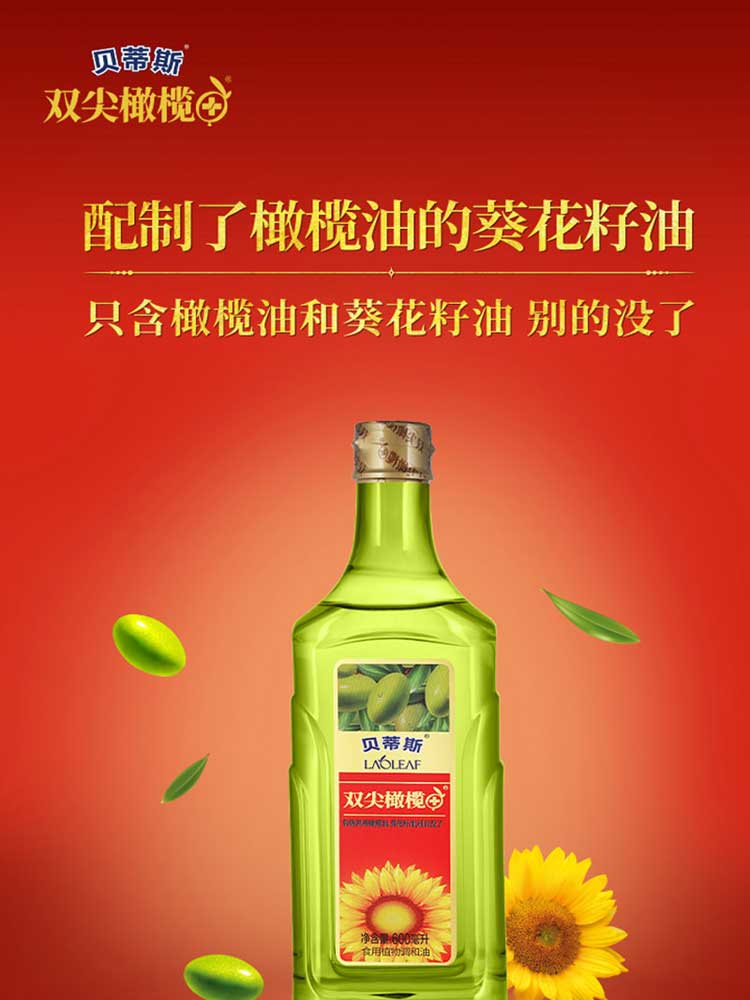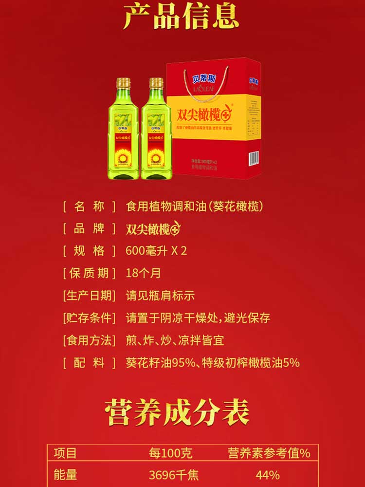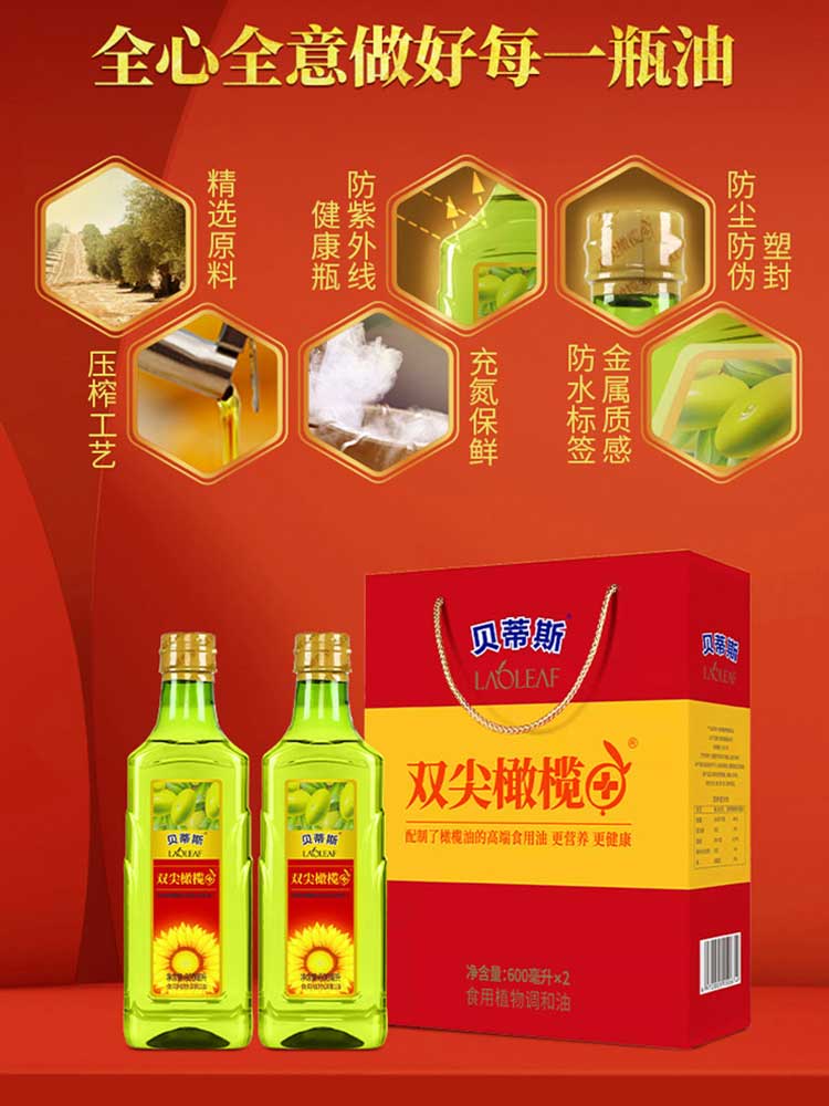 贝蒂斯食用植物调和油(葵花橄榄)600ML*2礼盒装