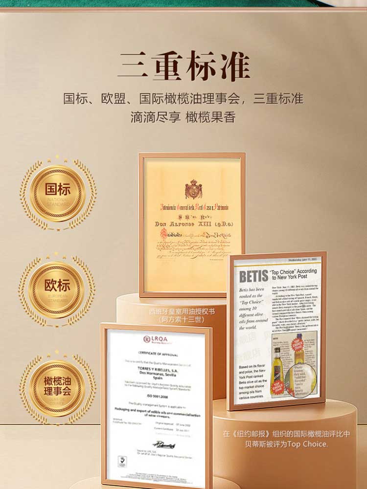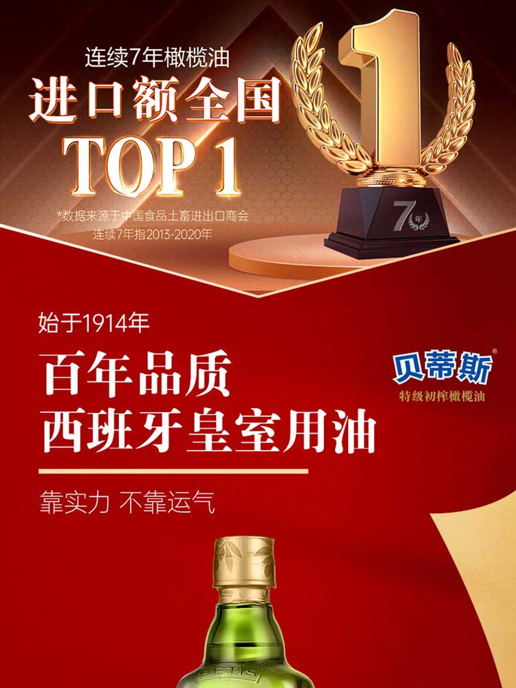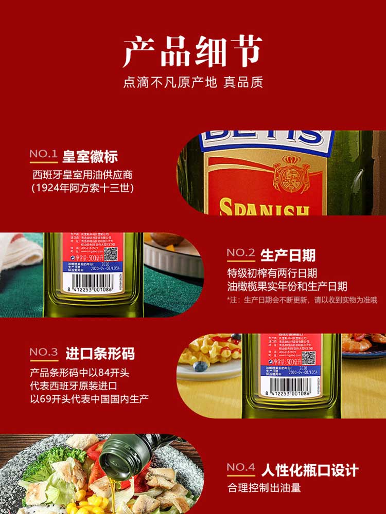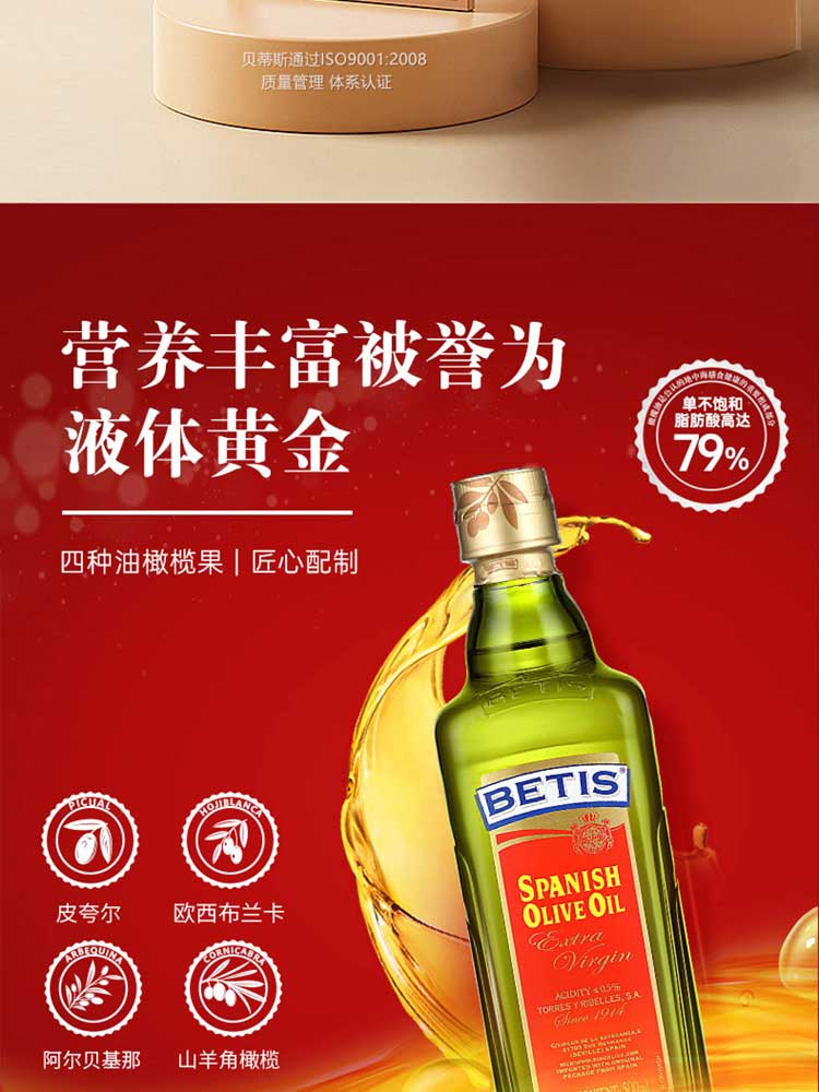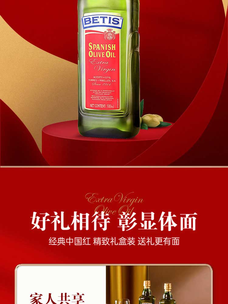 贝蒂斯特级初榨橄榄油500ML*1瓶装