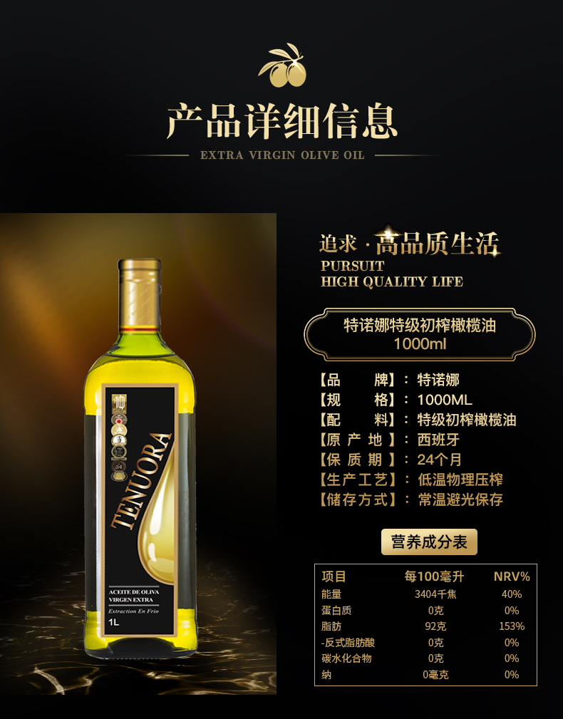 特诺娜特级初榨橄榄油黑色精装礼盒1000ml*2