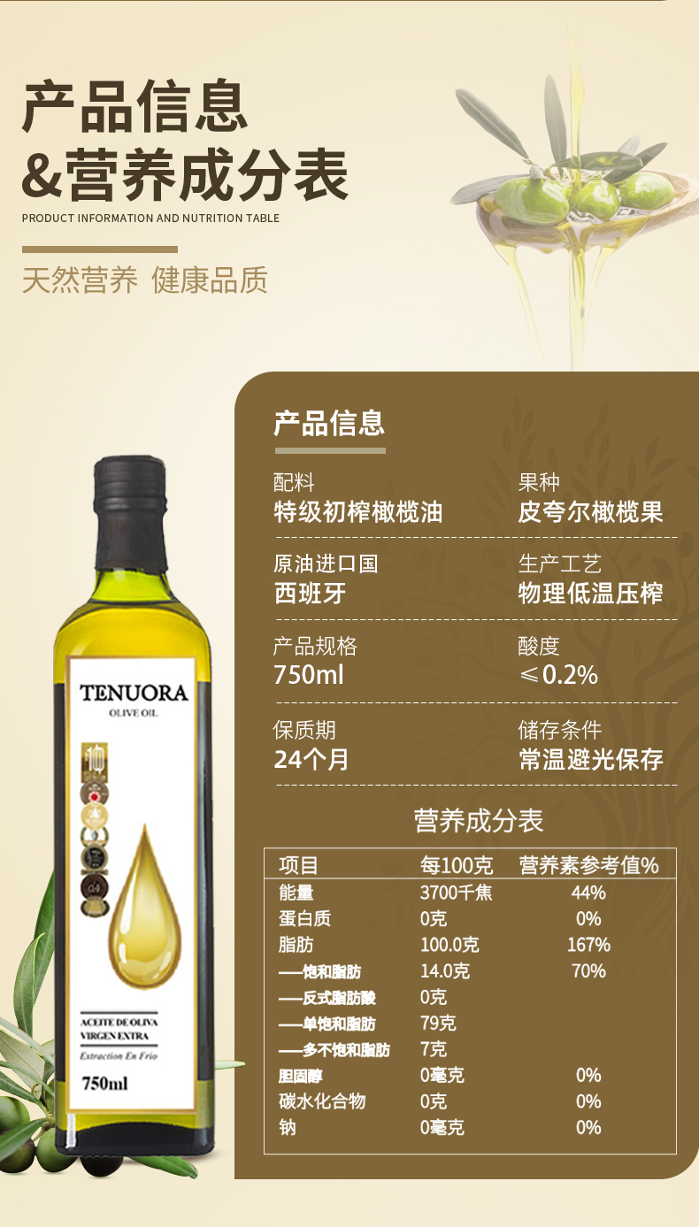 特诺娜特级初榨橄榄油750ML(白金标)*2