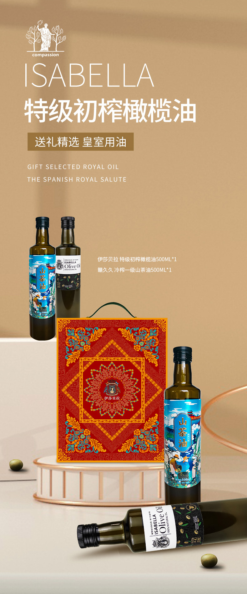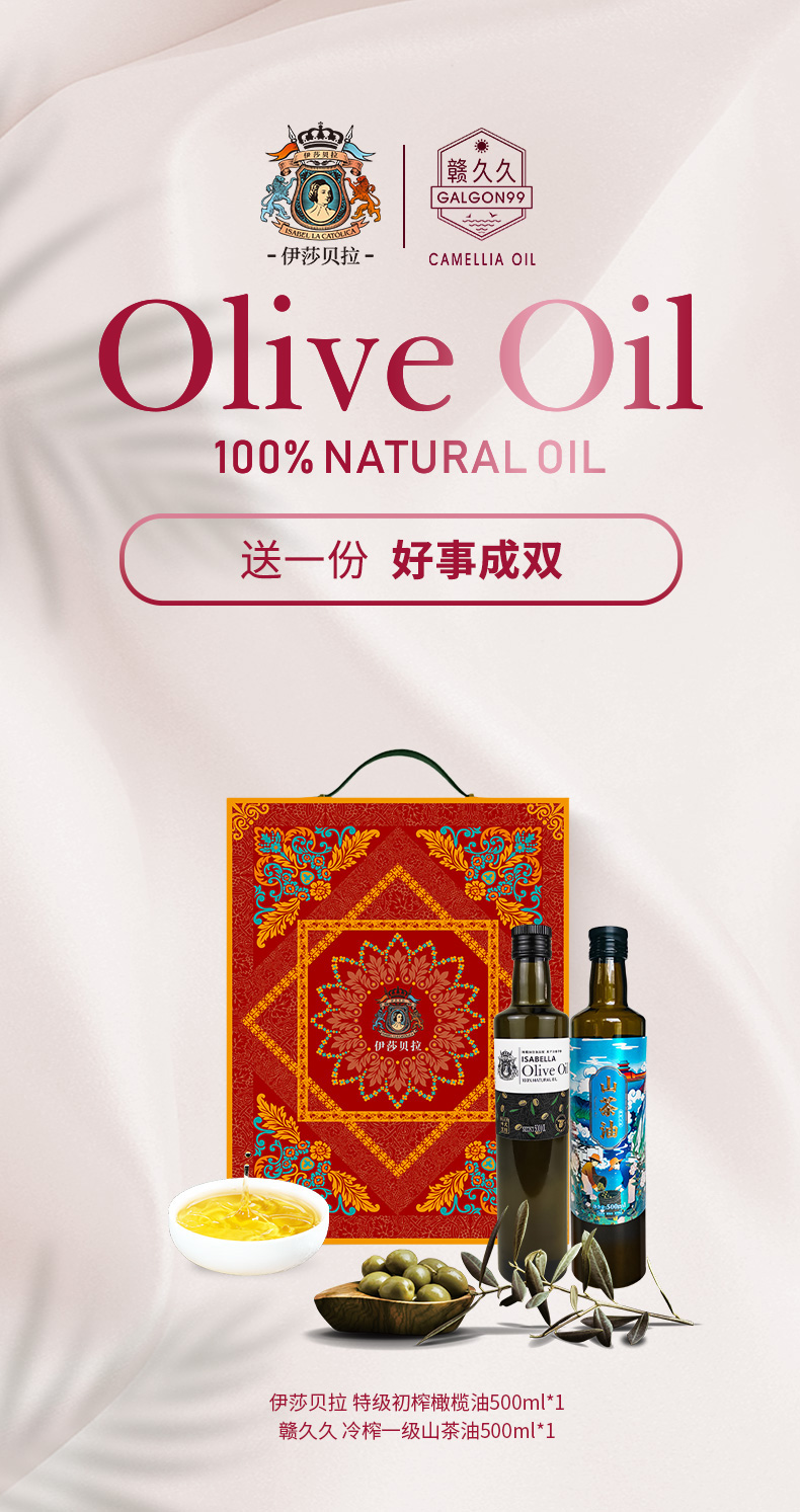 伊莎贝拉好事成双 特级初榨橄榄油+山茶油组合500ml*2
