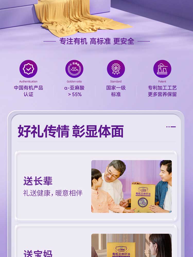 贝蒂斯小贝厨房有机亚麻籽油500ml*2礼盒装