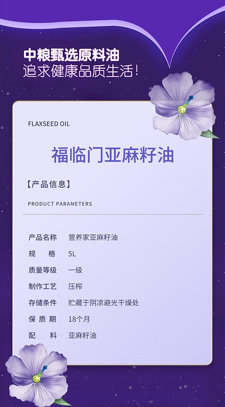 中粮福临门亚麻籽油5L