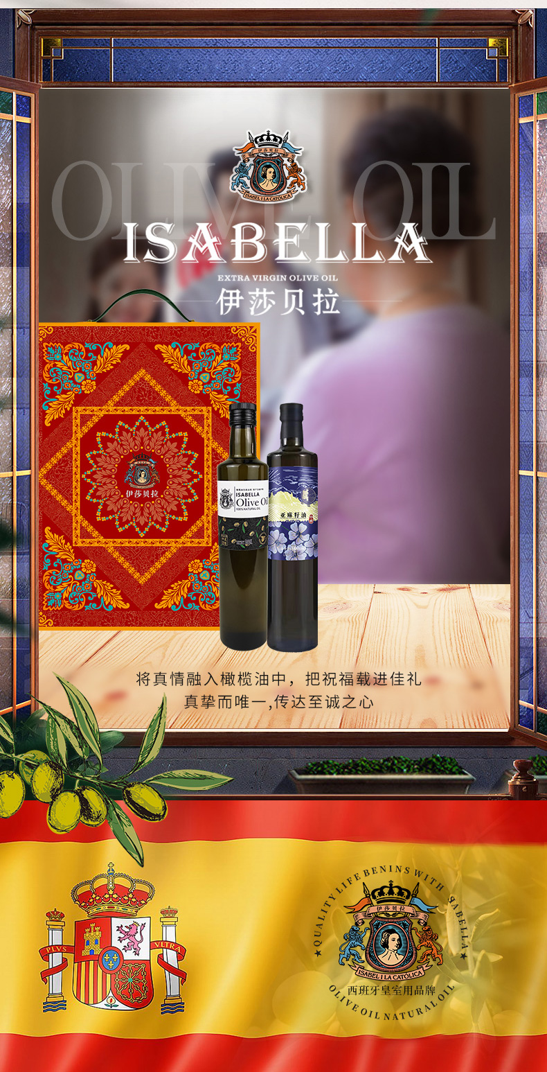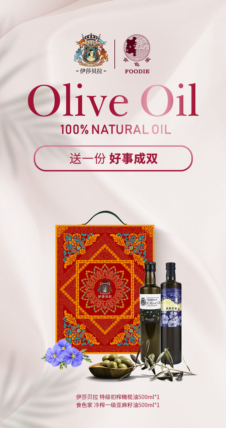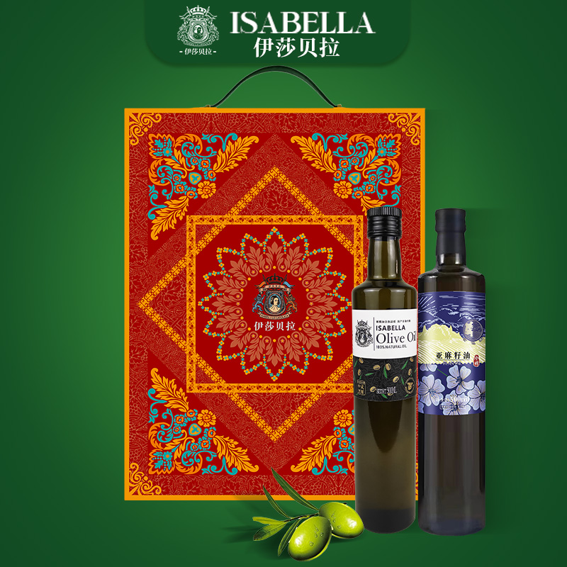 伊莎贝拉好事成双 特级初榨橄榄油+亚麻籽油组合500ml*2