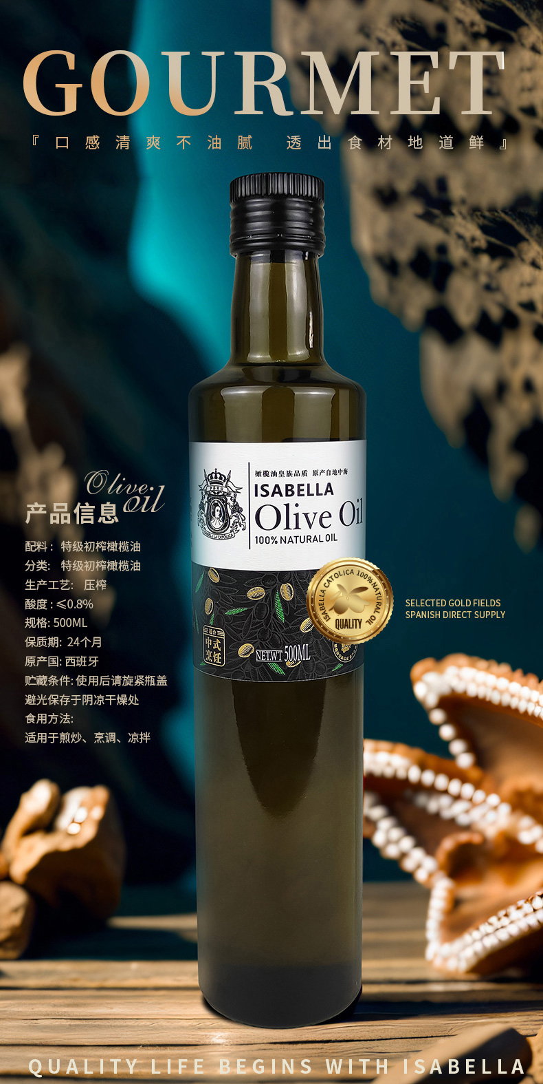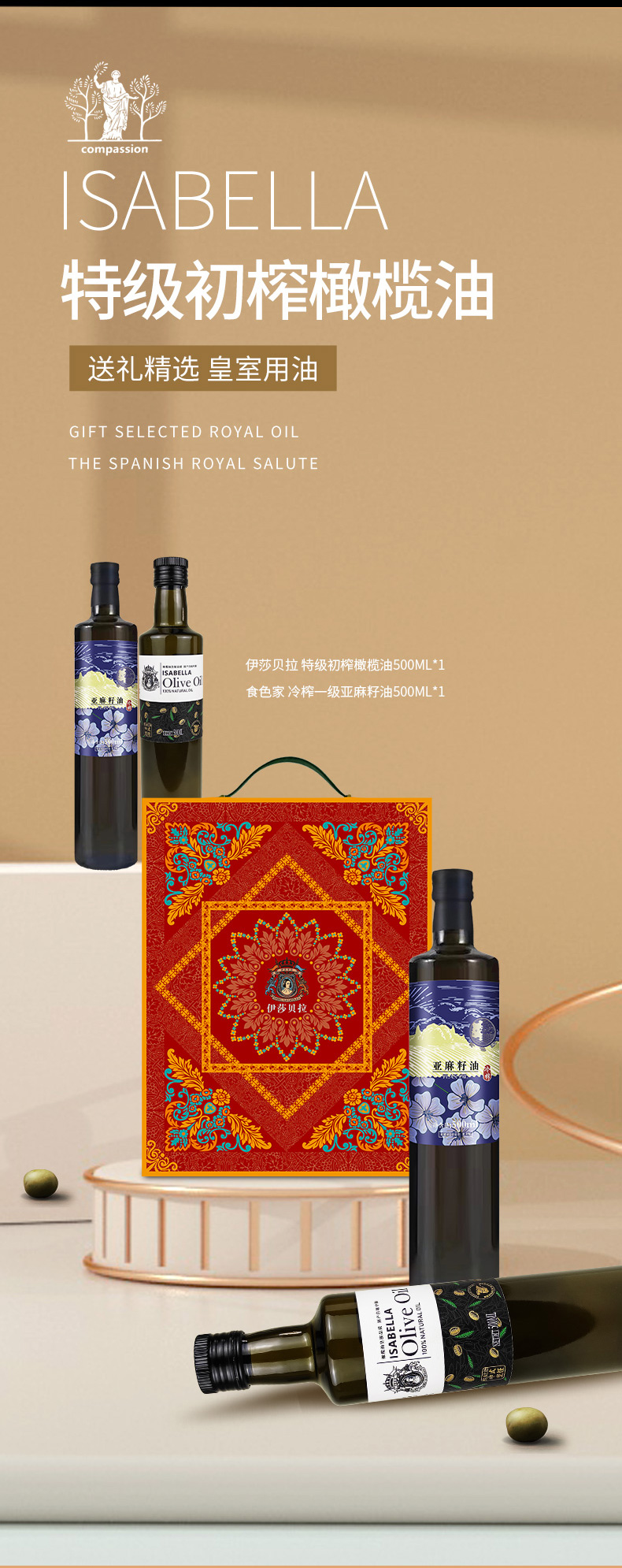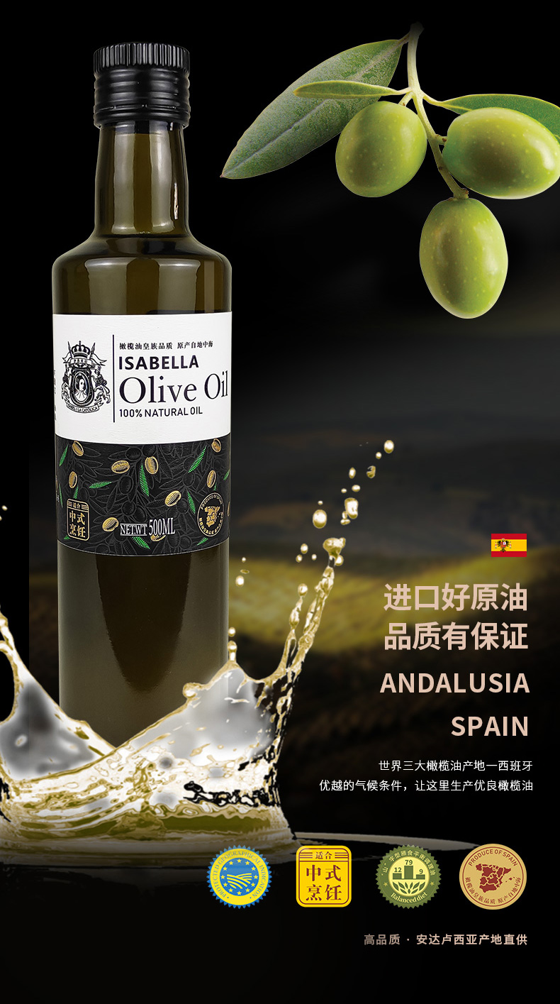 伊莎贝拉好事成双 特级初榨橄榄油+亚麻籽油组合500ml*2