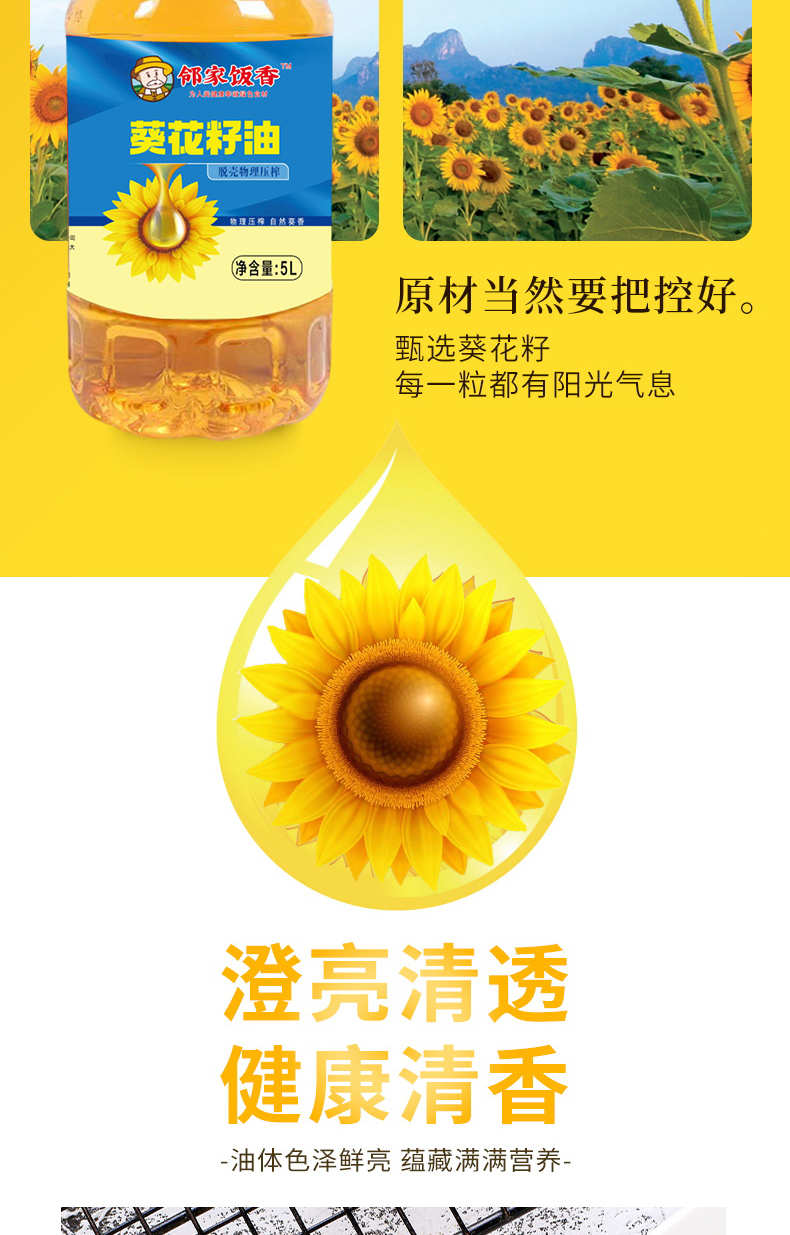 邻家饭香 物理压榨一级葵花籽油 5L/桶 LJFX135-K
