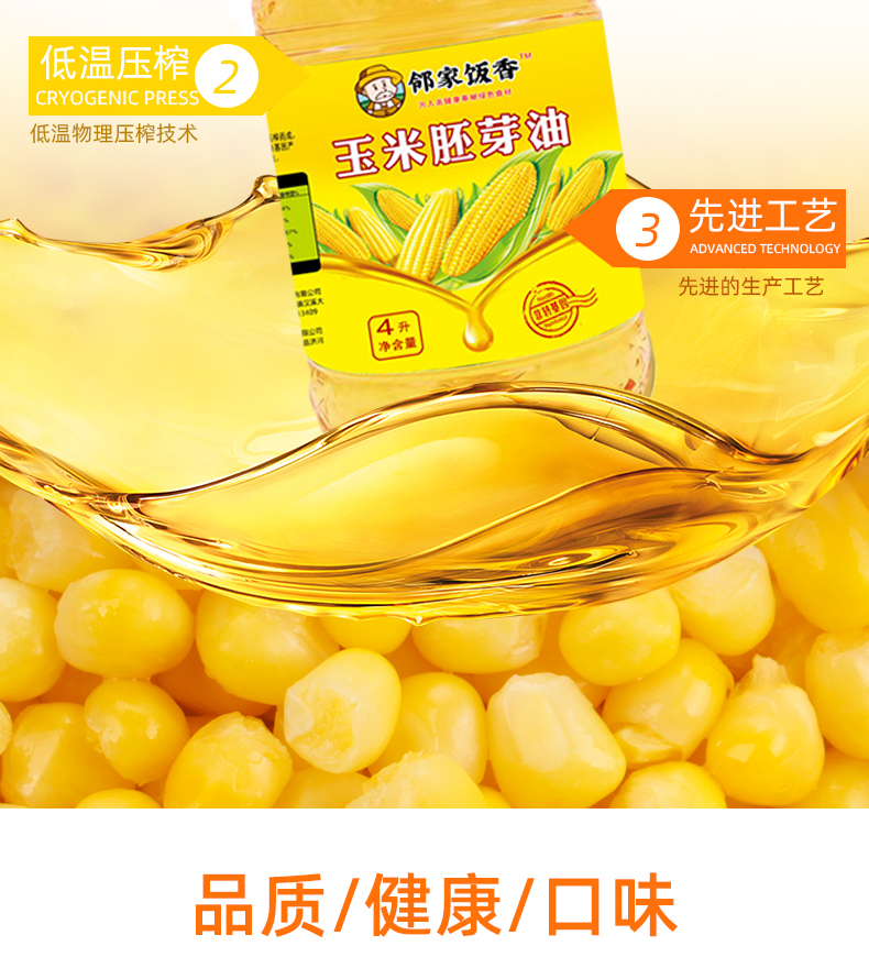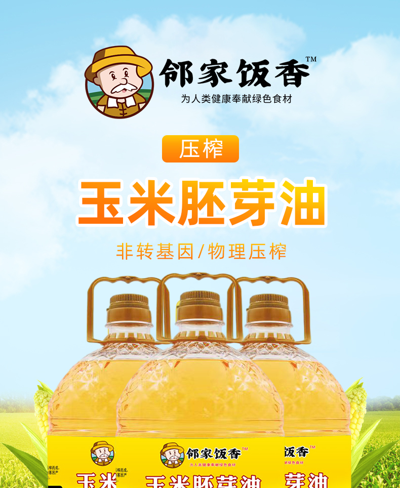 邻家饭香 非转基因 物理压榨一级玉米胚芽油 4L/桶 LJFX129