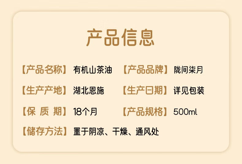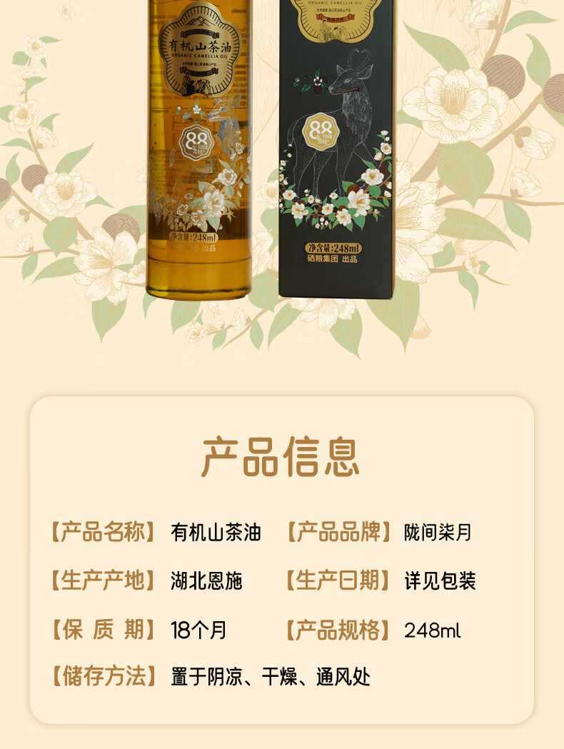陇间柒月【暮秋坊】 有机山茶油248ml/500ml
