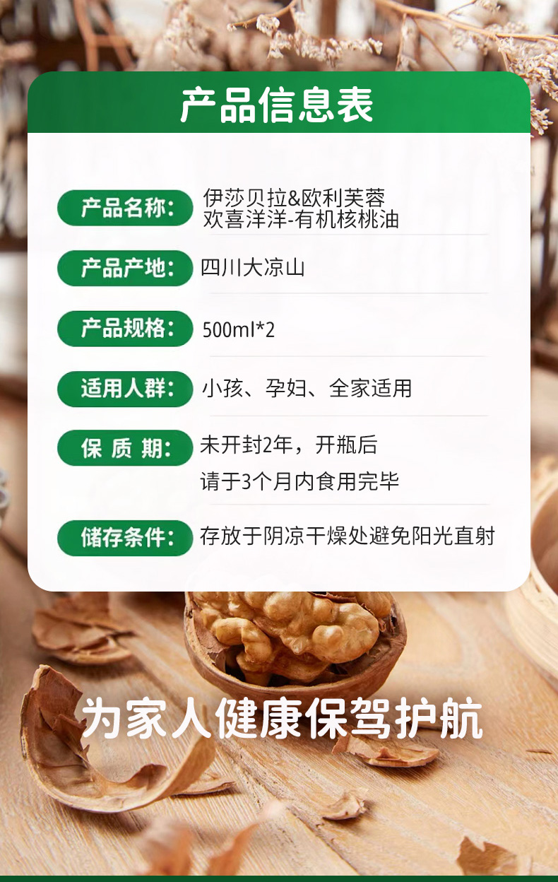 • 伊莎贝拉欢喜洋洋 有机-核桃油500ml*2