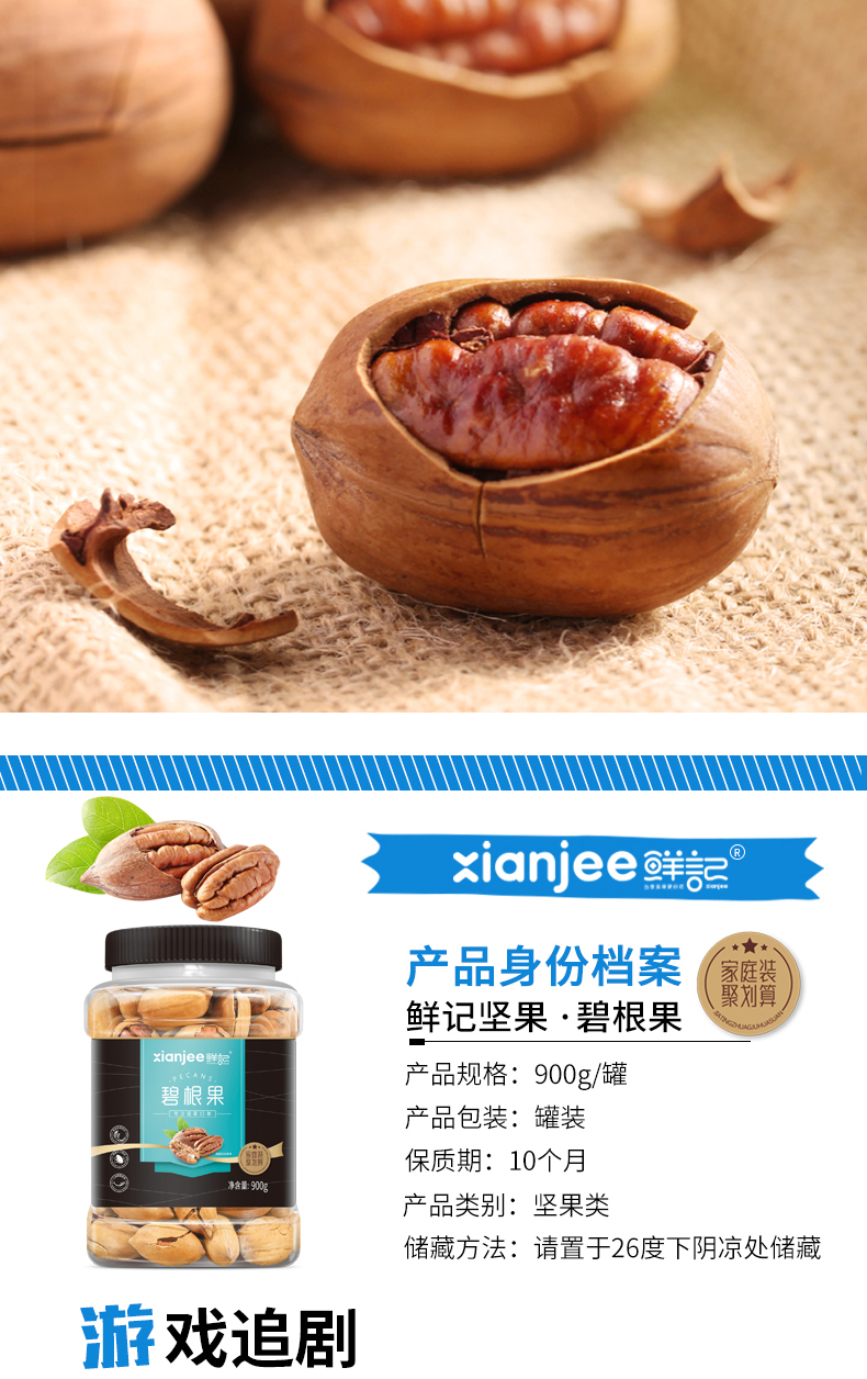 鲜记 碧根果900g