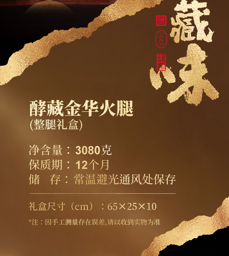 诸记酵藏金华火腿整腿礼盒3.08kg