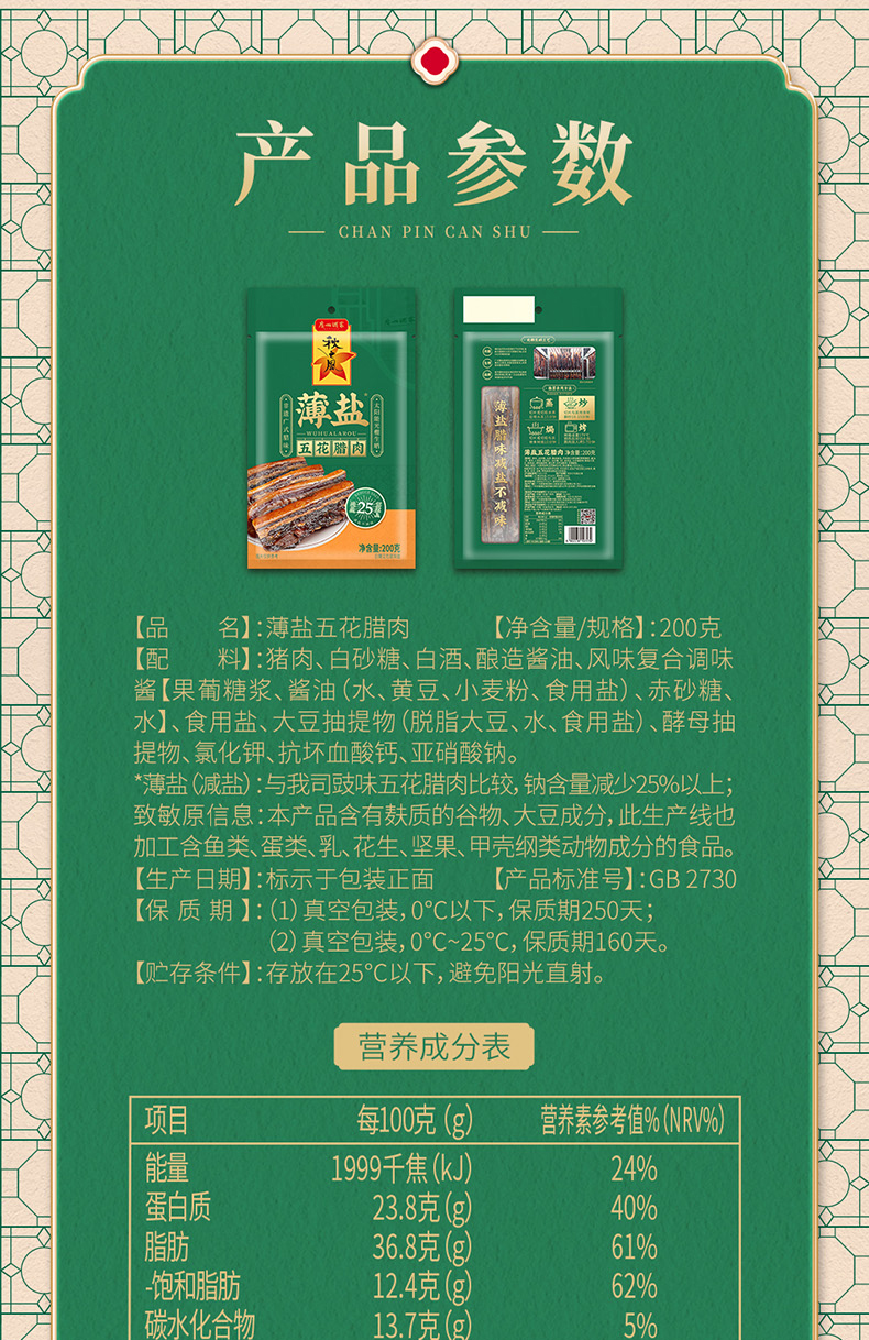 【广州酒家】 健康薄盐 腊味礼盒900g