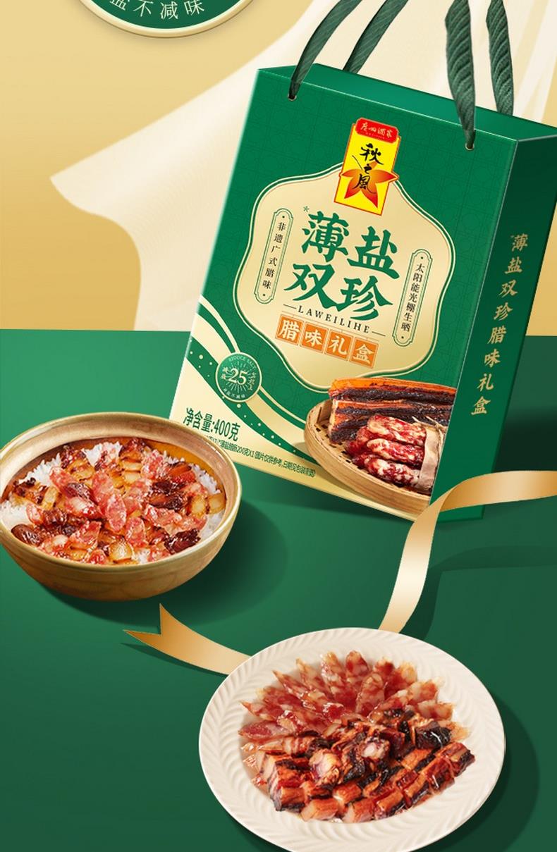 【广州酒家】 薄盐双珍 腊肠礼盒400g