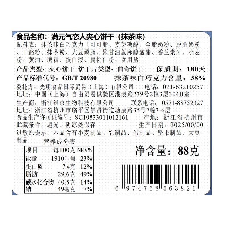 光明满元气 芝士恋人88g