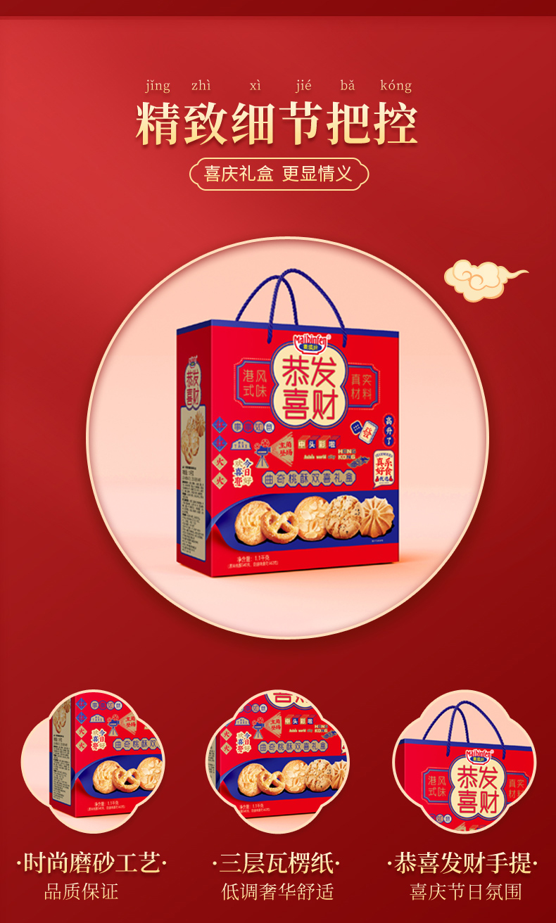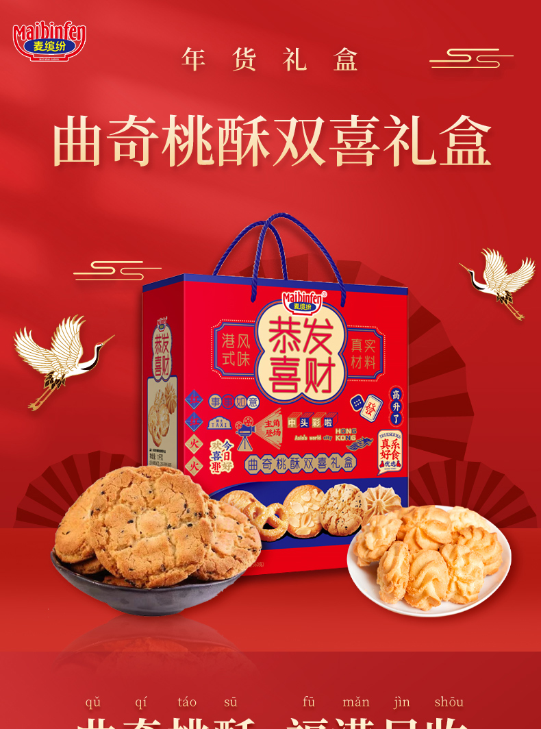 麦缤纷 恭喜发财曲奇桃酥双喜礼盒1.1kg