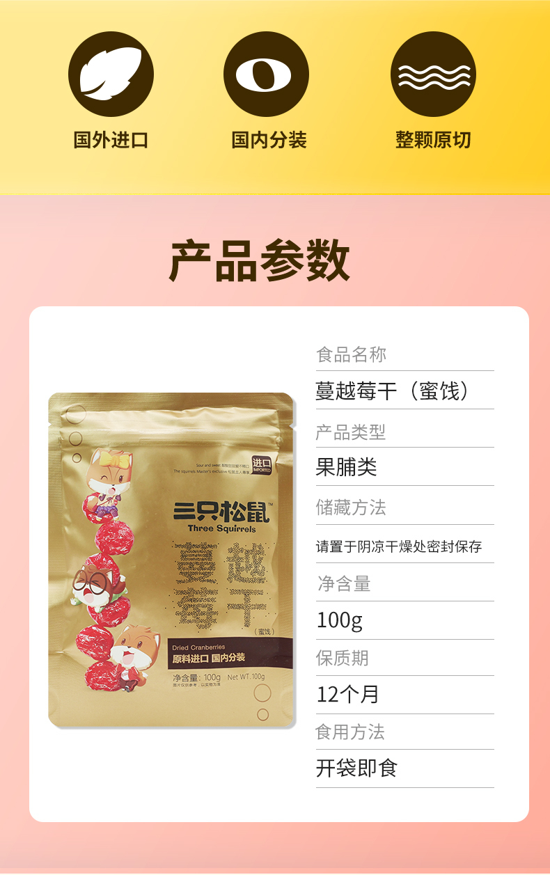 三只松鼠蔓越莓干100g