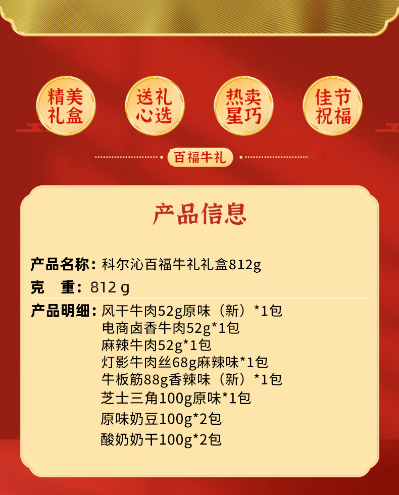 【科尔沁】 牛肉百福 牛礼礼盒812g
